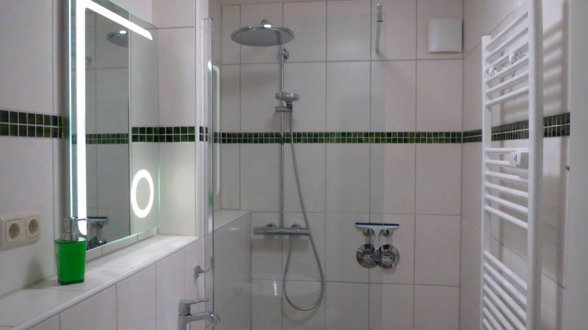 Gemütliche Ferienwohnung, komplett neu renoviert, windgeschützte und teilweise überdachte Terrasse zur Meerseite. Wohn-/Schlafraum mit großem Doppelbett (2m x 2m), für eine Kind bis 12 Jahre steht eine gemütliche Schlafcouch zur Verfügung, neues Duschbad/WC, Einbauküche mit Ceran-Kochfeld, moderner Backofen, Spülmaschine, Mikrowelle, Kaffeemaschine, Heißwasserbereiter, Toaster etc., Computer mit WLAN-Internetzugang, großer Flachbildfernseher.