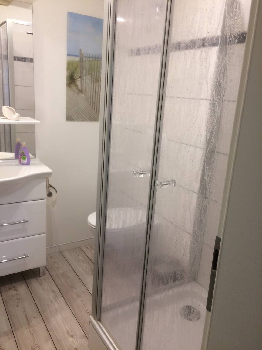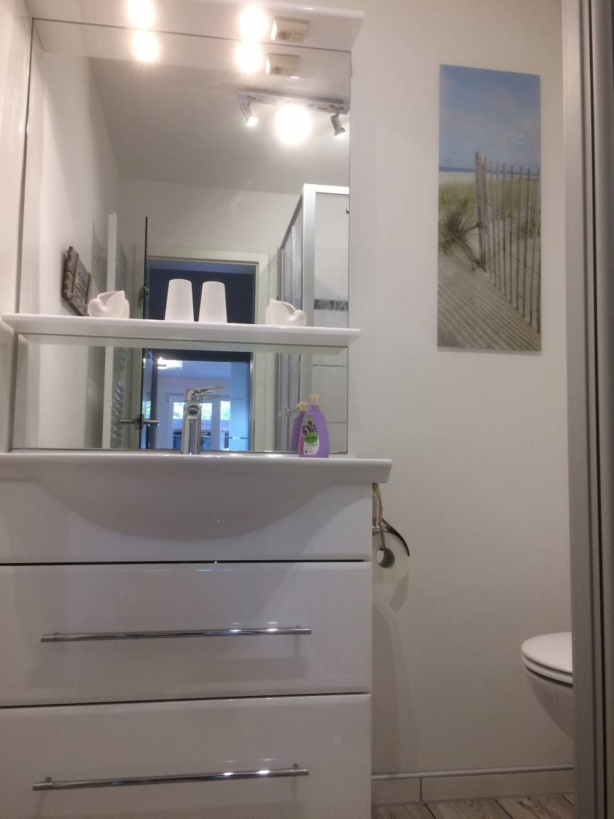 Über die großzügige Terrasse erreichen Sie die 2016 komplett neu renovierte ca. 40 qm große Ferienwohnung "Dock 54". Eintreten und wohlfühlen: in der liebevoll eingerichtete Wohnung fühlen Sie sich gleich wie zuhause. Neben Flachbildschirmen im Wohnzimmer und im Schlafzimmer, Blue-ray Player, CD-Player und Radio haben Sie einen freien Internetzugang über WLAN.Die Küche ist ausgestattet mit Spülmaschine, Backofen, Ceranfeld, Toaster, Wasserkocher, Kühlschrank mit Gefrierfach und Nespresso Maschine mit Milchaufschäumer. Machen Sie es sich auf dem Ledersofa bequem und lassen Sie Ihren Urlaubstag gemütlich ausklingen. Das innenliegenden Duschbad ist hell und modern gefliest und enthält einen Handtuchheizkörper, sowie Föhn.