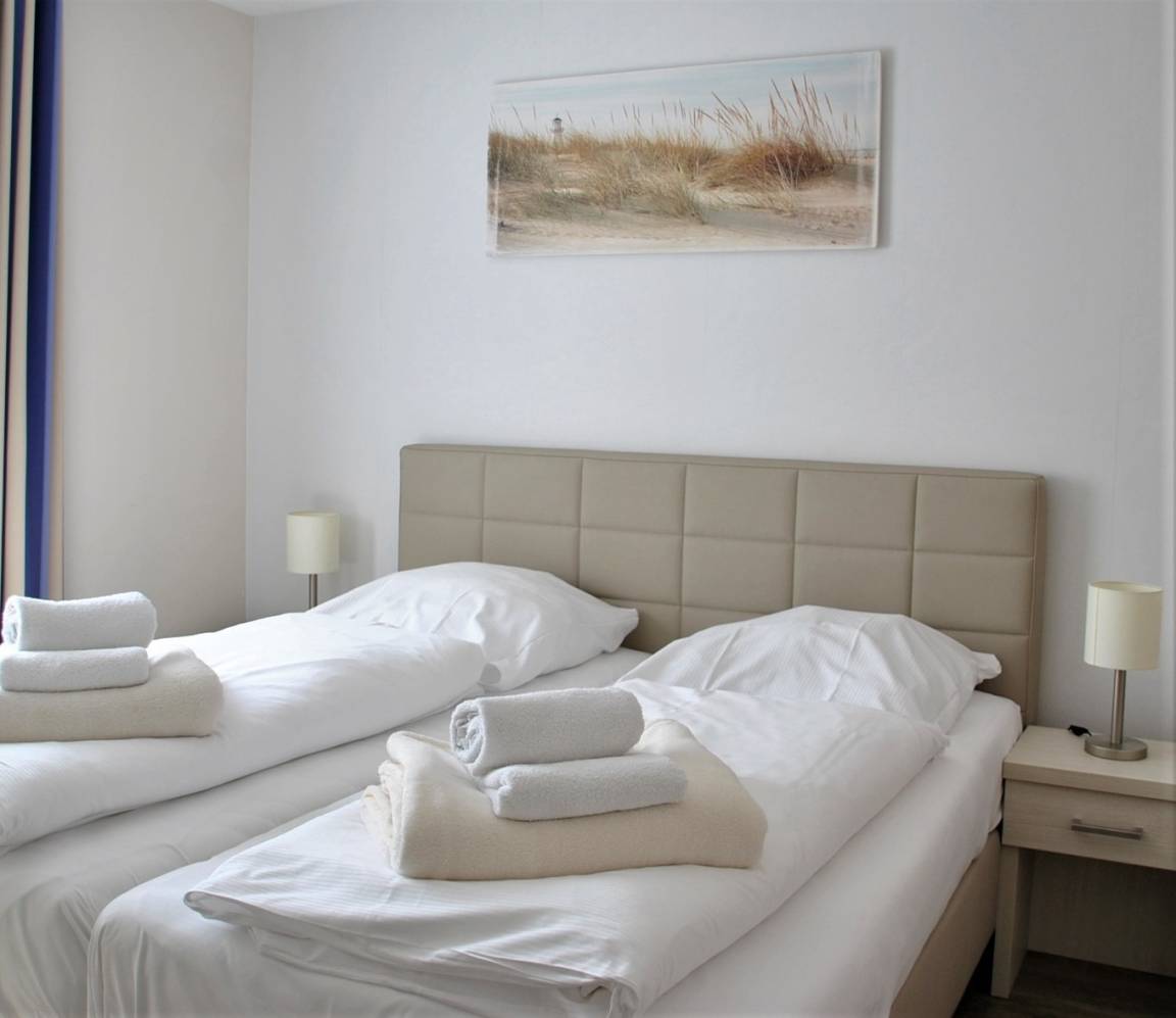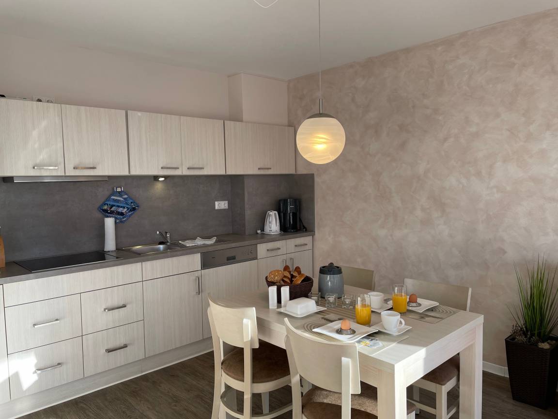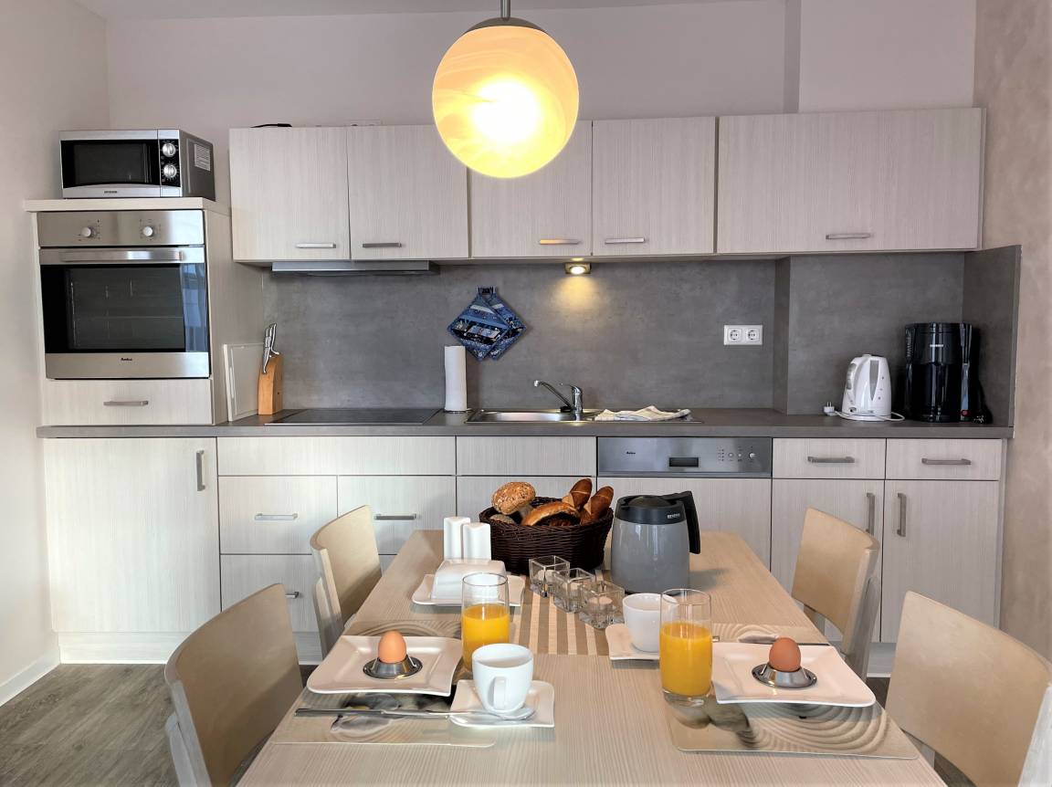 In Ihrem vollständig eingerichteten Apartment "Sturmmöwe" werden Sie sich von der ersten Sekunde an wohlfühlen. Für besten Komfort sorgen zum Beispiel Boxspringbetten (in Einzelbetten), ein eigener PKW-Stellplatz, ein Fahrstuhl sowie Waschmaschine und Trockner im Haus.