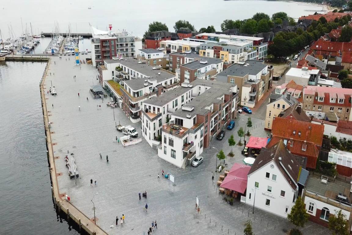 Die "Die kleine Feine" liegt im Gebäude "Jungfernstieg I", das mit weiteren Gebäuden das "Quartier Hafenspitze" bildet; in exklusiver Lage direkt an der Hafenpromenade. Ein eigener PKW-Stellplatz in der hauseigenen Tiefgarage und das Erreichen Ihres Feriendomizils über einen Fahrstuhl, sorgen für ein entspanntes und barrierefreies Ankommen. Der Abstellraum für Fahrräder lädt Sie dazu ein, Eckernförde und seine Umgebung auch aktiv zu erkunden.