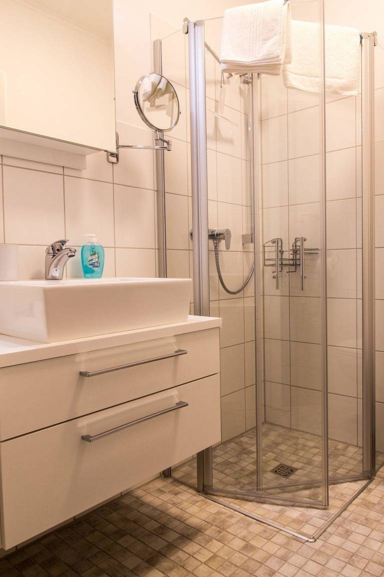 Der kostenlose hauseigene Parkplatz ist in einer Parkeinrichtung mit Stellplatz unter Dach nur 3 min. fußläufig entfernt, so dass das Auto abgestellt werden kann und erst zur Abreise wieder raus geholt werden muss.