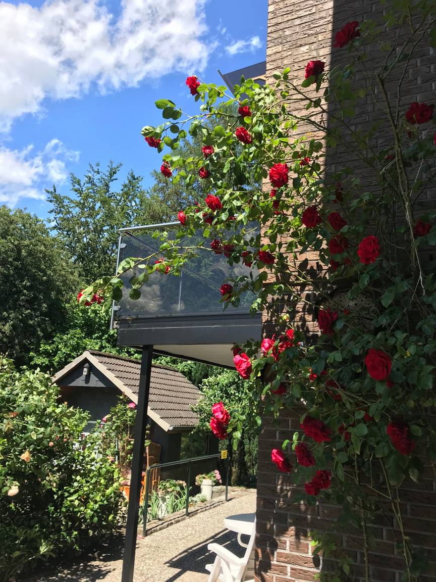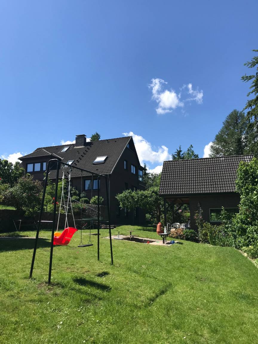 Unser Grundstück grenzt direkt an Wald- und Wiesenflächen, durch die der Lachsenbach fließt - wir blicken in die Natur, oft kommen uns Rehe und Eichhörnchen in unserem Garten besuchen.
