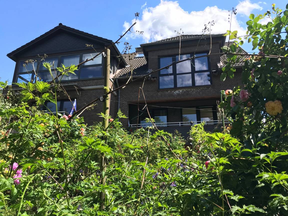 "Heiners Eck - Haus Sylvia" liegt eingekuschelt und ein wenig im Grünen verborgen, auf einem großzügigen, 3000 Quadratmeter großen, ruhigen Eckgrundstück im schönen Stadtteil Borby.