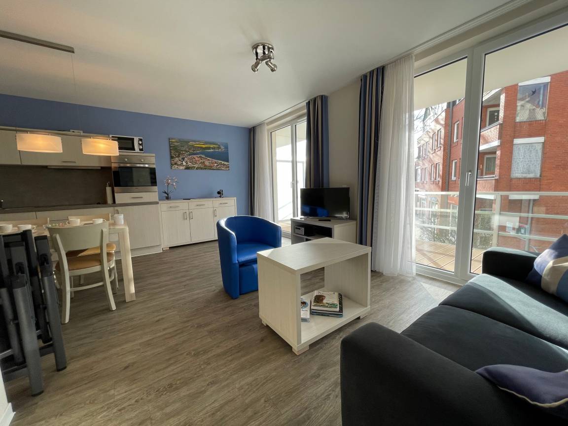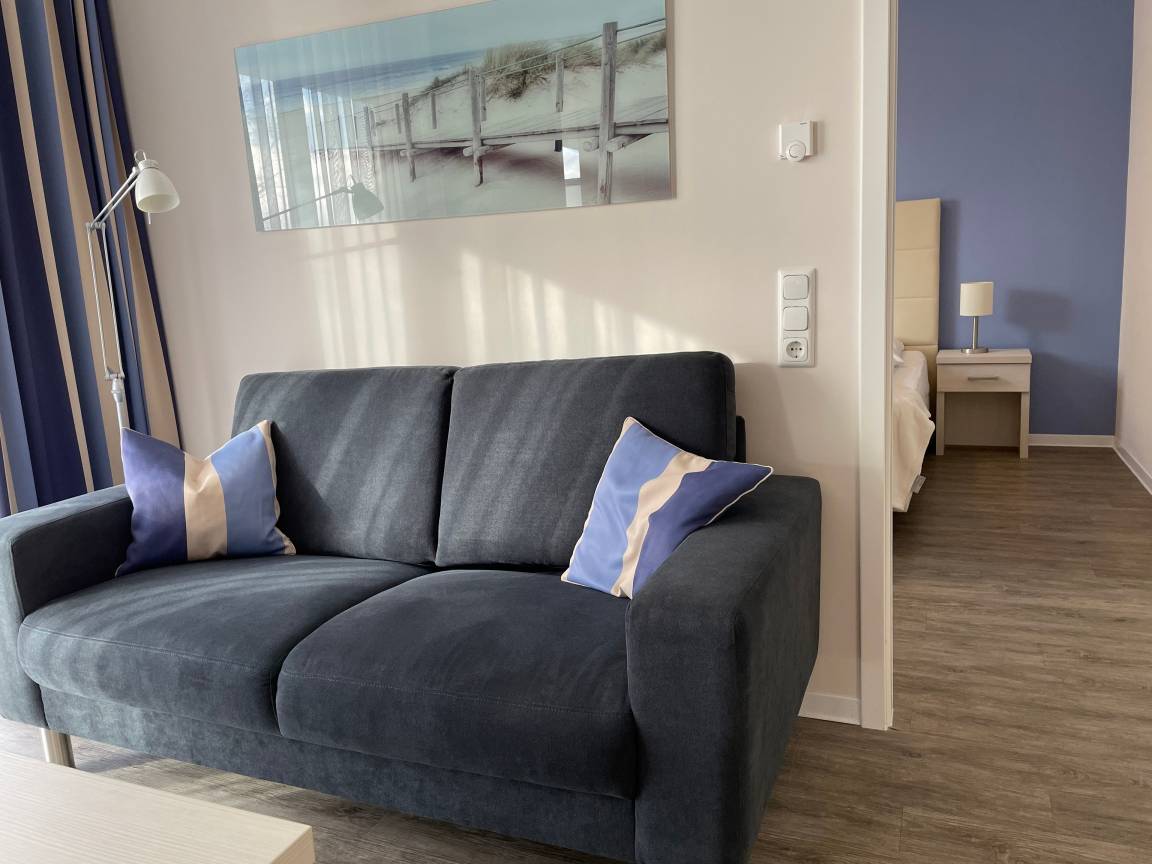 Dieses modern eingerichtete, 46 qm große Nichtraucher-Apartment bietet viel Platz und Komfort für zwei Erwachsene und ein Baby bis zum 3. Lebensjahr: