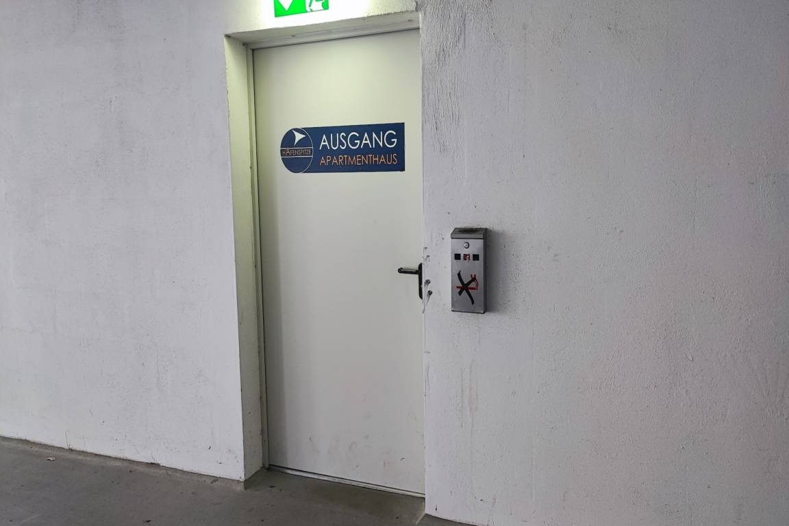 Treffpunkt: Hafenspitze 2, mit Auto oder zu Fuß, seitlich neben dem Hauseingang des Apartmenthauses warten. Bitte nicht an der Rezeption fragen (andere Agentur)! Zum Entladen des Gepäcks ist ein kurzweiliges Halten vor dem Apartmenthaus möglich. Der Parkplatz Nummer 0.27 (Maße 2,40 m) befindet im Nachbargebäude im mehrstöckigen Parkhaus auf der Ebene 0.