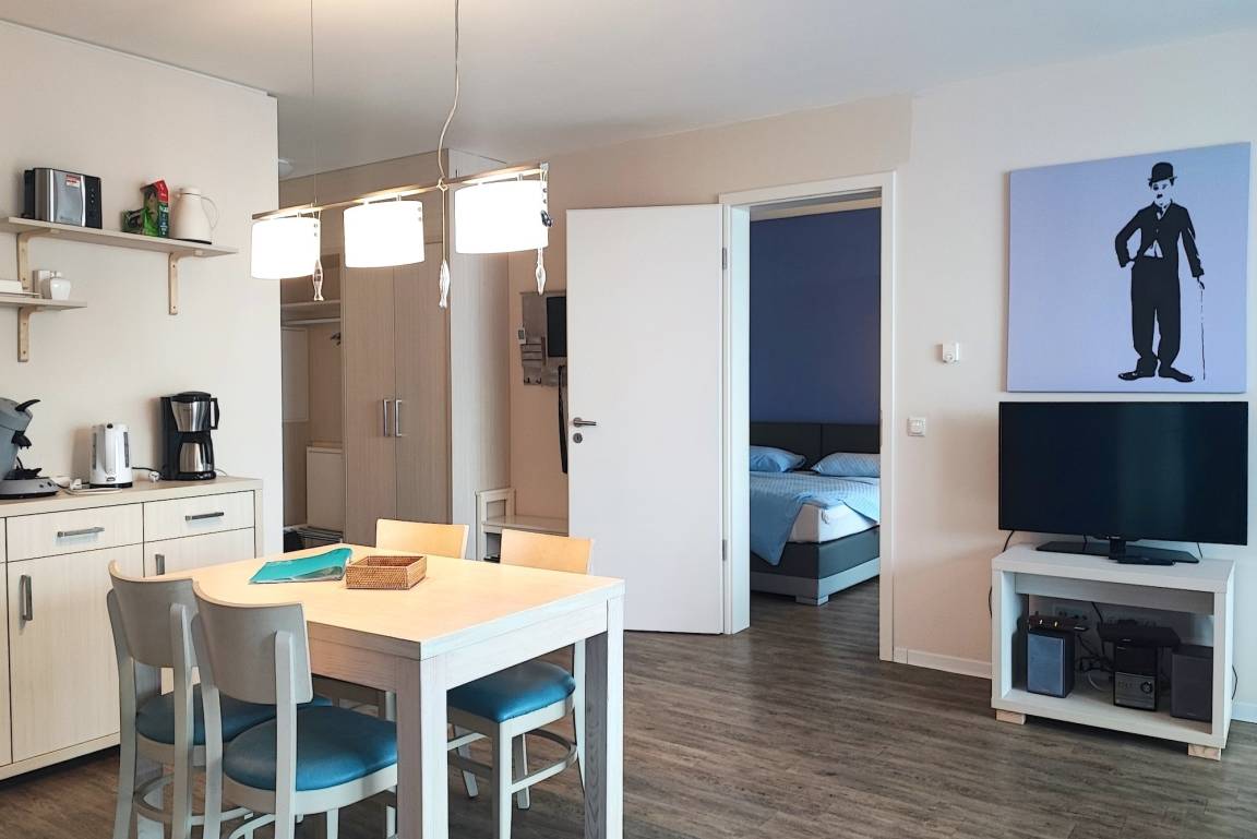 „Die positiven Aspekte vorweg: Die Wohnung war bei Übergabe blitzblank! Man hätte barfuß laufen können! Die Lage könnte nicht besser sein (von den aktuellen innerstädtischen Baustellen mal abgesehen). Geschirr (gleich mehr dazu) und Töpfe gut. Pfannen, na ja..... Fußbodenheizung sehr angenehm. Badezimmer sehr geräumig und angenehm ausgestattet. Verbesserungsmöglichkeiten: Filzgleiter unter allen beweglichen Möbeln anbringen (unter den Küchenstühlen habe ich welche angebracht). Pfannenschrott auswechseln. Die großen Menue-Teller passen nicht in die Spülmaschine ! Und auch nicht ins Spülbecken, da die Ecken dort gefährdet sind. Im Parhaus, Ebene "0", dort wo der Parkplatz "27" sich befindet, funktionieren von 9 Leuchten lediglich zwei. Die Müllstation wird auch von den beiden Gastronomiebetrieben genutzt und dementsprechend voll sind die Müllcontainer.“
