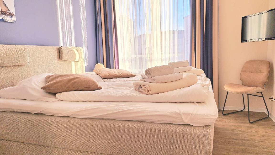 In Ihrem modern eingerichteten Apartment werden Sie sich von der ersten Sekunde an wohlfühlen. Für besten Komfort sorgen zum Beispiel Boxspringbetten, ein eigener PKW-Stellplatz, ein Fahrstuhl sowie Waschmaschine und Trockner im Haus.