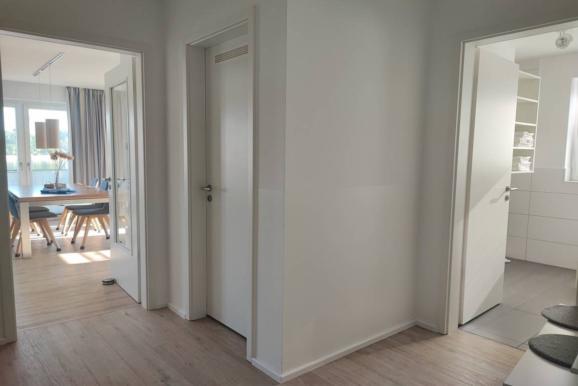 Die "Strandperle 9" liegt im Gebäude "Hafenpromenade", das mit weiteren Gebäuden das "Quartier Hafenspitze" bildet; in exklusiver Lage direkt an der Hafenpromenade. Ein eigener PKW-Stellplatz in der hauseigenen Tiefgarage und das Erreichen Ihres Feriendomizils über einen Fahrstuhl, sorgen für ein entspanntes und barrierefreies Ankommen. Der Abstellraum für Fahrräder lädt Sie dazu ein, Eckernförde und seine Umgebung auch aktiv zu erkunden.