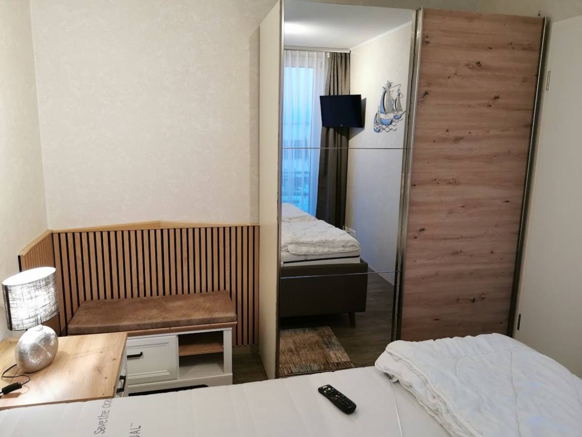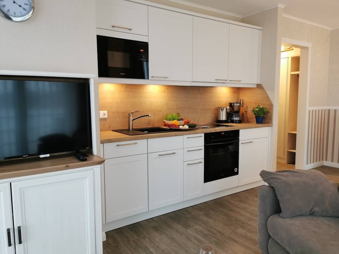 In Ihrem modern eingerichteten Apartment mit Küchenzeile werden Sie sich von der ersten Sekunde an wohlfühlen. Für besten Schlaf sorgen Doppelbetten mit zeitgemäßem Komfort, in denen Sie morgens mit grandiosem Ausblick auf die Eckernförder Bucht, aufwachen werden. Ein gemütliches Frühstück auf dem Balkon bietet sich bei Sonnenschein an.