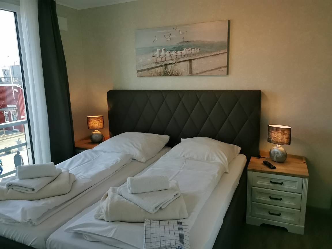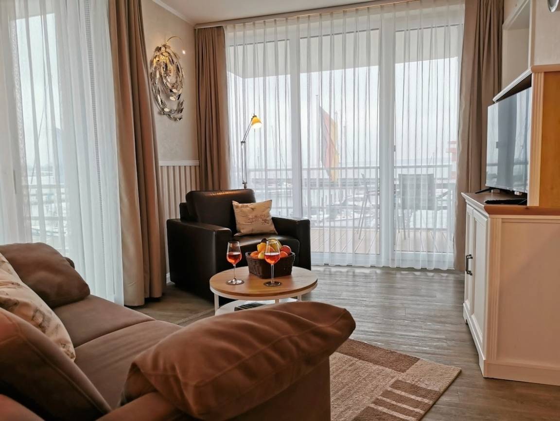 Bei Ihrer Ankunft in unserem 4-* Apartment "Am Leuchtfeuer 2" für zwei Personen genießen Sie atemberaubende Blicke auf den Hafen und die Ostsee. Treten Sie auf einen der Balkone und lassen Sie den Blick über die Hafeneinfahrt mit ihren Segelbooten, Ausflugsdampfern und Fischkuttern, hinüber nach Borby bis zur Hafenmole und Leuchtturm schweifen. Alles liegt direkt zu Ihren Füßen und ist zum Greifen nah.