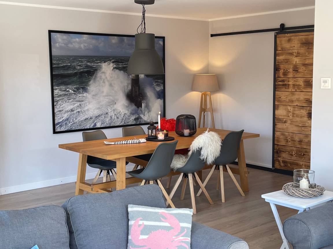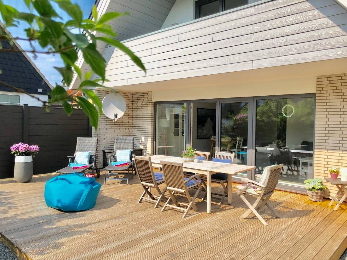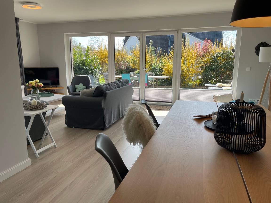 Das Haus liegt auf einem eingewachsenen Grundstück in einem ruhigen Wohngebiet. Es ist komplett saniert und auf dem neuesten Stand(smart). Im großen Wohn-und Esszimmer können Sie Ferien machen wie zu Hause, eine riesige Fensterfront zur 35 qm großen Holzterrasse lässt Licht und Sonne herein. In der modern ausgestatteten Küche bleiben keine Wünsche offen. Genießen Sie das große Induktionskochfeld, den hochwertigen Backofen und die umfangreich ausgestattete Einrichtung. Im Badezimmer können Sie den Morgen mit Regendusche und Fußbodenerwärmung entspannt beginnen. Eine große Badewanne lässt auch die Wintertage schnell vergehen. Es gibt zwei voll ausgestattete Schlafzimmer jeweils mit Doppelbett (180x200 Einzelmatratzen) und viel Schrankplatz. Eine komplette Verdunkelung ist möglich. Ein Schlafzimmer verfügt über einen Zugang zum überdachten Balkon (Loggia) auf dem man abends noch gemütlich sitzen kann um die letzten Sonnenstrahlen einzufangen. Schauen Sie auch auf unserer Website vorbei!