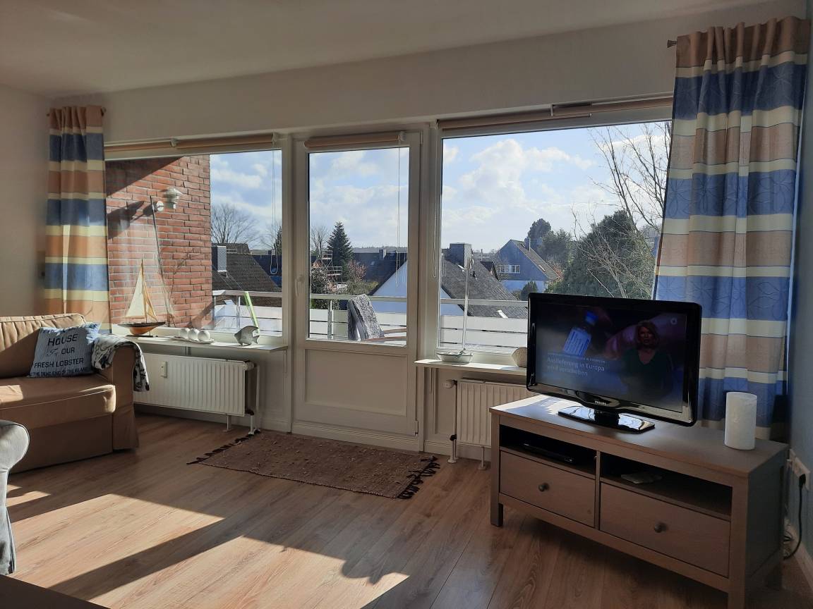 Die geschmackvoll ausgestattete Ferienwohnung liegt im 2. OG einer Hausanlage. 2012 erfolgte eine Grundsanierung und Neuausstattung. Der große Südbalkon ist komplett möbliert, ein herrlicher Weitblick macht den Aufenthalt zum Erlebnis.Im Haus befinden sich ein Fahrradkeller sowie eine Münzwaschmaschine und ein Trockner. Musikanlage und Fernseher sind vorhanden. In der Küche gibt es auch eine Spülmaschine und eine Mikrowelle.