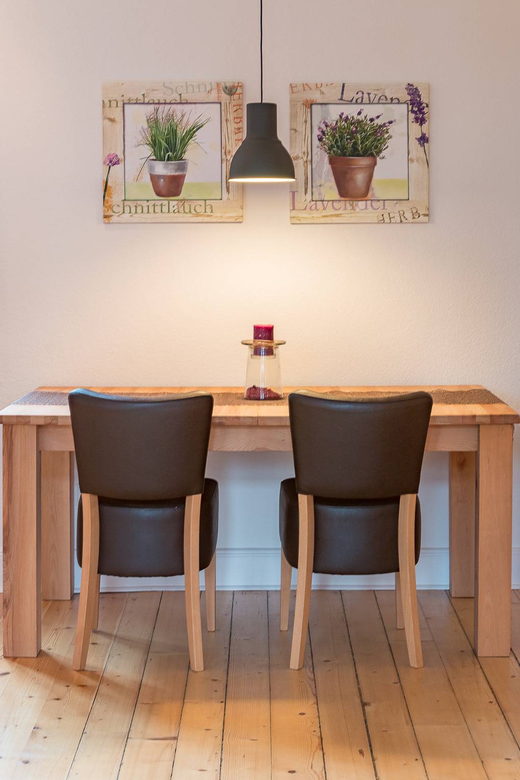 Die Küche bietet genügend Raum für ein gemütliches Zusammensein. Sie ist ausgestattet mit einem Geschirrspüler, einem Kühlschrank mit Gefrierfach, Mikrowelle, Toaster, Wasserkocher, Kaffeemaschine und vielen kleinen Küchenhelfern.