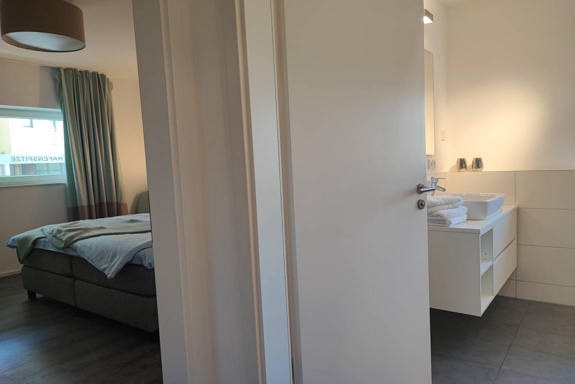 Der stilvoll eingerichtete, großzügige Wohn- und Essbereich, mit voll ausgestatteter Küche, lädt zum gemeinsamen Entspannen und Kochen ein! Die Ferienwohnung verfügt über einen Balkon mit wunderschönem Blick auf das Hafenbecken. Beide Schlafzimmer wurden mit modernen Doppelbetten (180x200 und 160x200), Kleiderschränken und TV-Geräten ausgestattet. Die Schlafzimmer bieten somit die gewünschte Erholung! Die Duschen in beiden Badezimmern sind ebenerdig. Die komplette Wohnung ist mit Vinylboden und Fußbodenheizung ausgestattet. Die im Hochparterre des Appartementhauses gelegene Ferienwohnung kann ''barrierefrei'' über einen Aufzug, mit direktem Zugang aus der Tiefgarage erreicht werden.