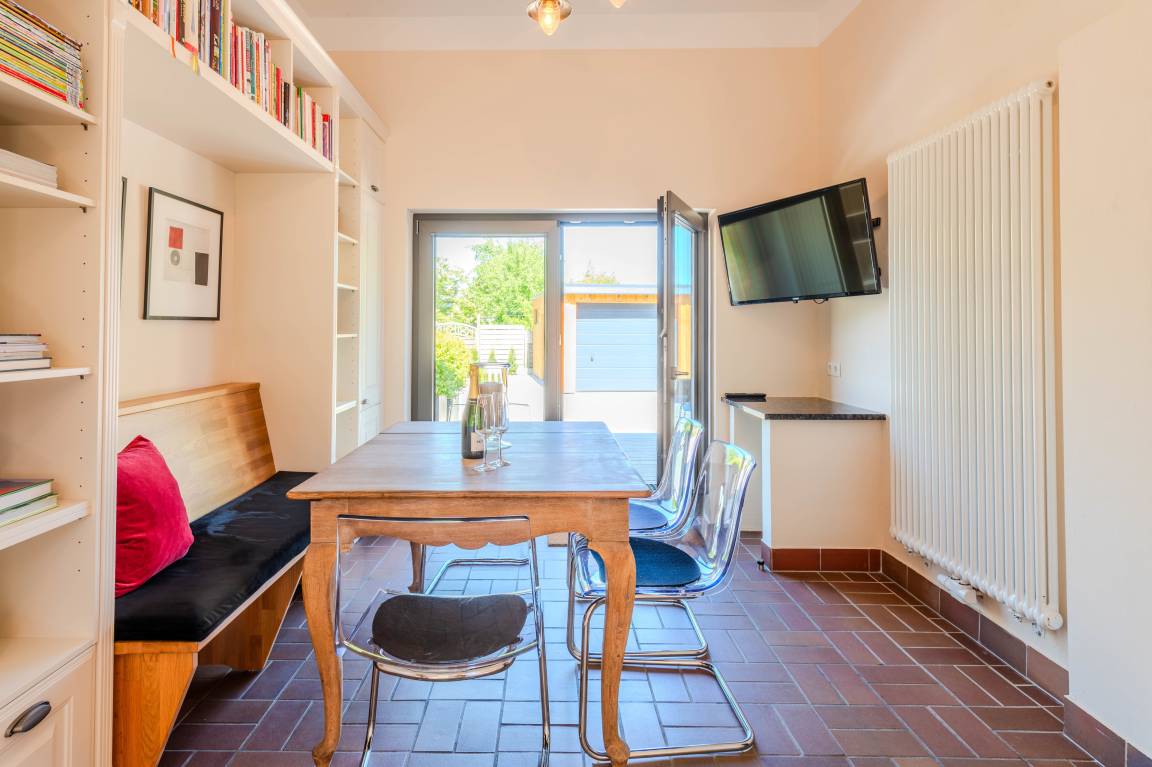Die Ferienwohnung "Landbäckerei 3" kann auf Wunsch bei Anreise mit 2-6 weiteren Erwachsenen mit den Wohnungen "Landbäckerei 1" und "Landbäckerei 2" verbunden werden. So genießen Sie einen schönen Urlaub in einer Gruppe und wohnen in 3 zusammenhängenden Wohnungen.