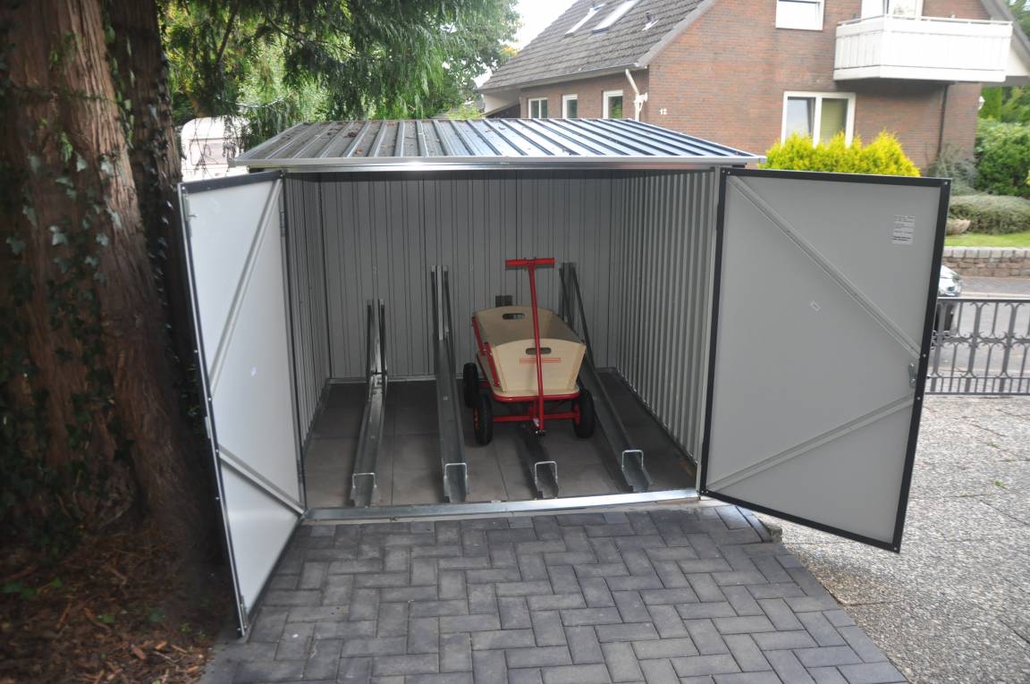 Eigene abschließbare Fahrradgarage für 4 Fahrräder.