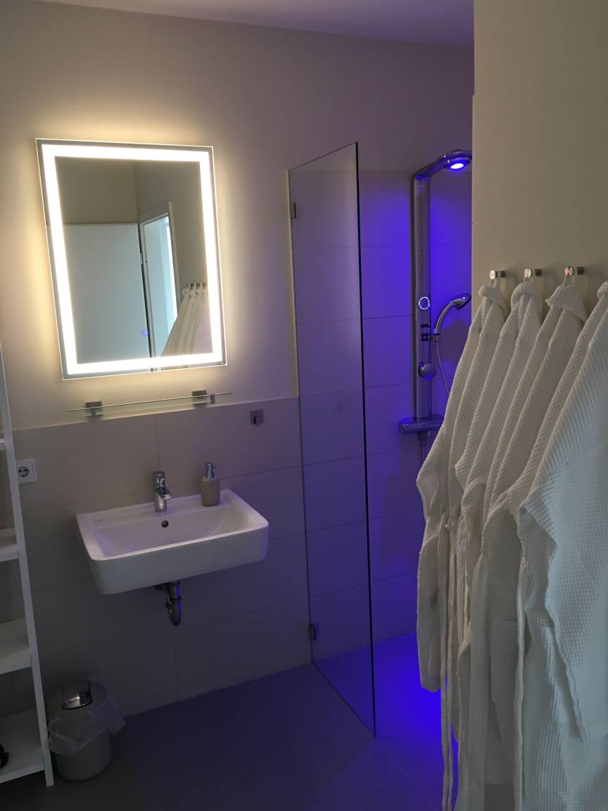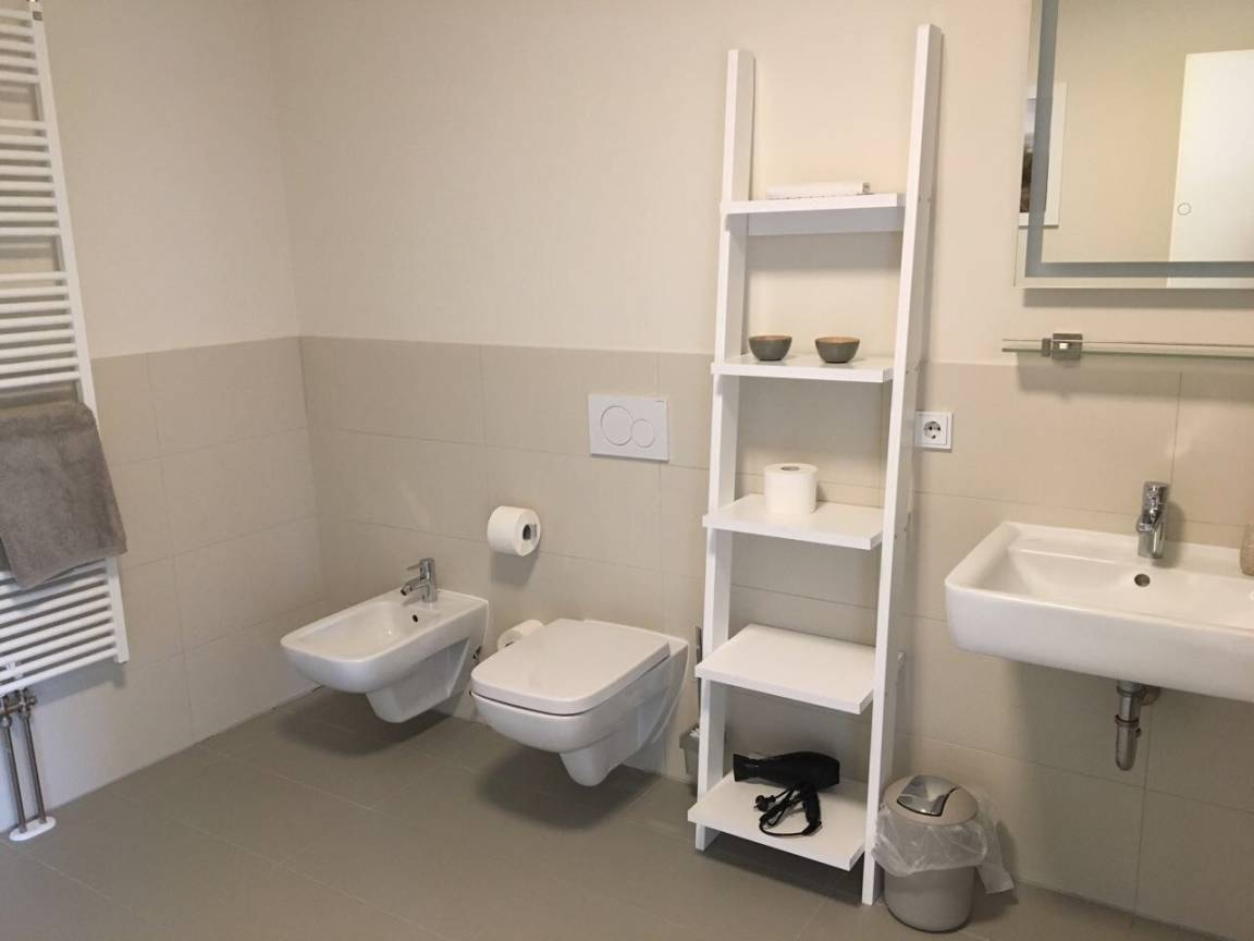 Die 2 Schlafzimmer verfügen über komfortable Boxspring-Betten und Fernseher. Des weiteren stehen Ihnen 2 moderne Voll-Bäder zur Verfügung. Im ersten befinden sich ein Waschtisch, WC, Bidet, eine ebenerdige Dusche sowie eine Whirlpool-Wanne. Das zweite Badezimmer ist mit einem Waschtisch, WC und einer Badewanne mit Duschmöglichkeit ausgestattet.