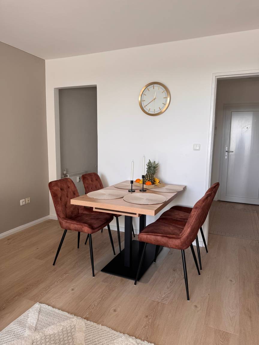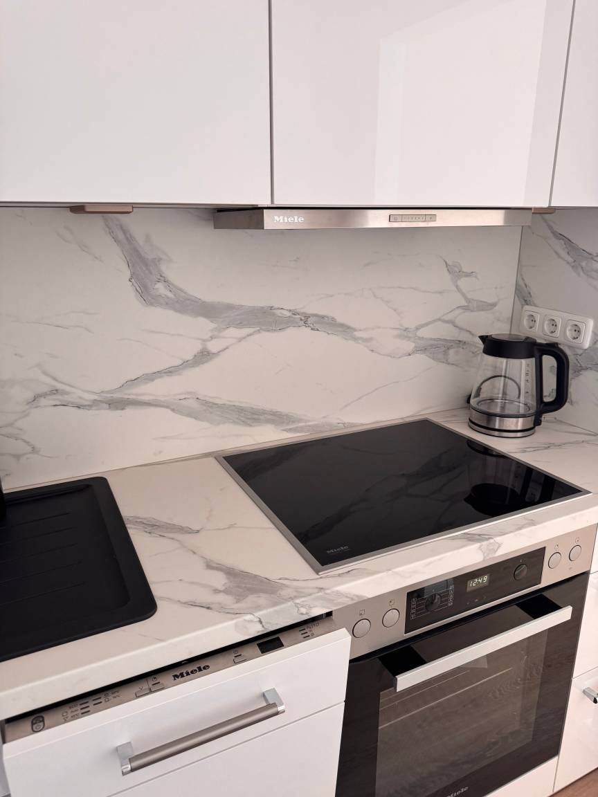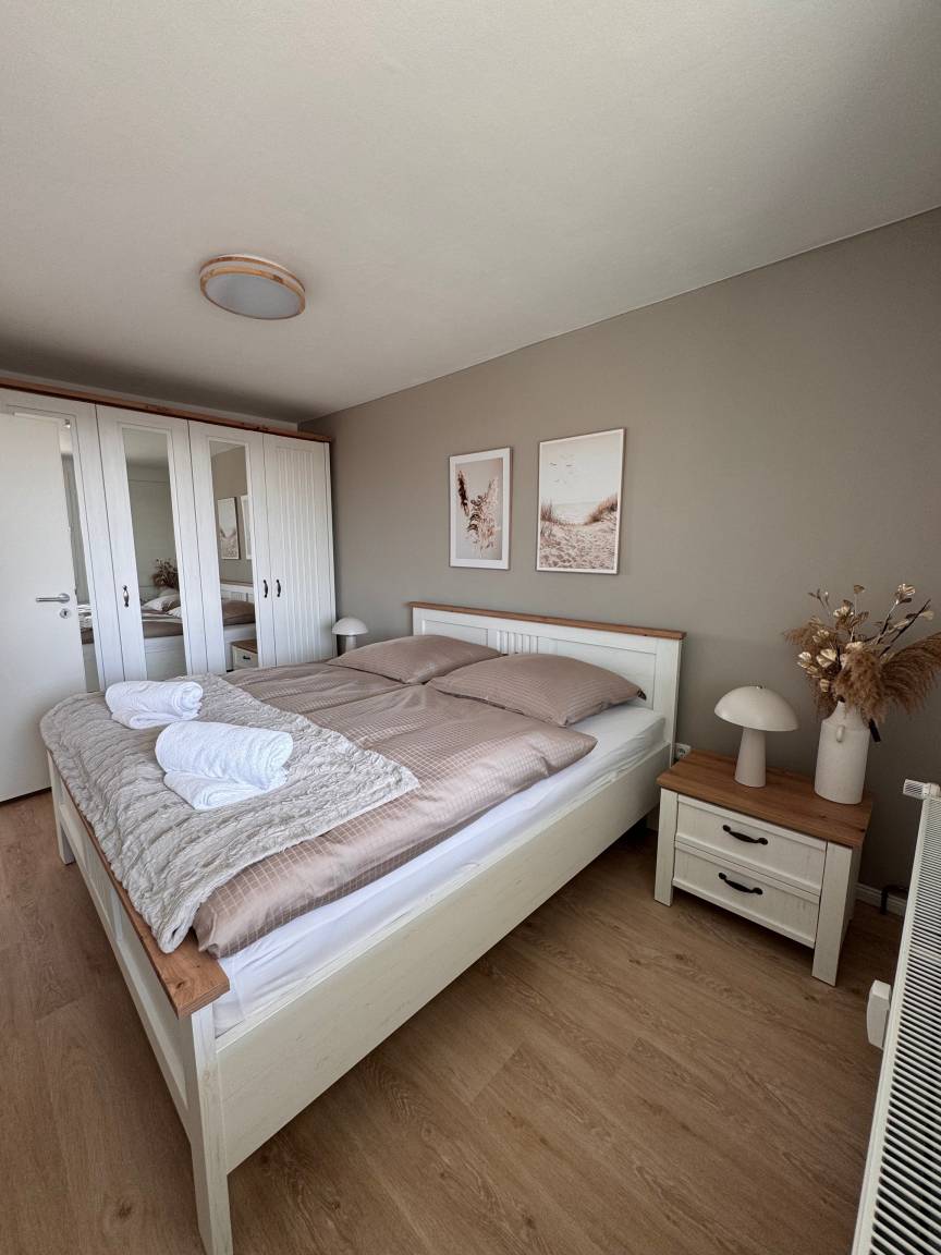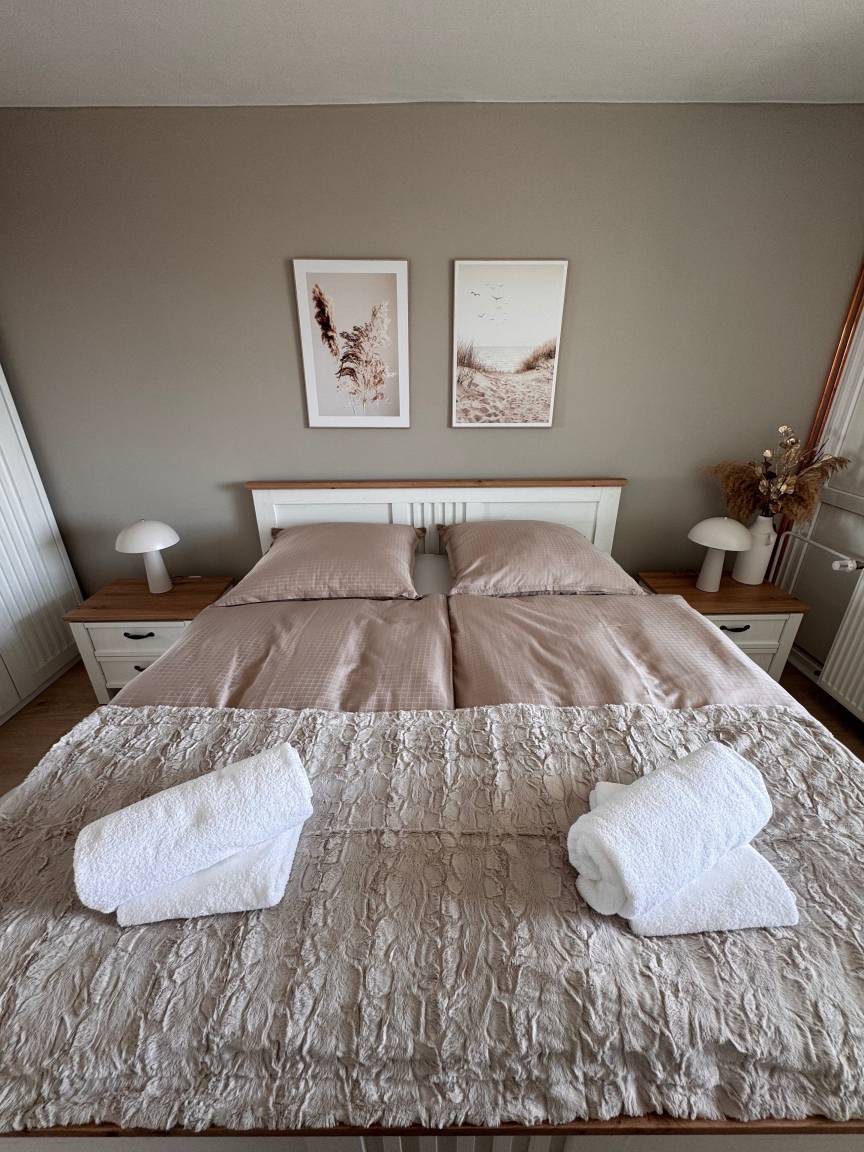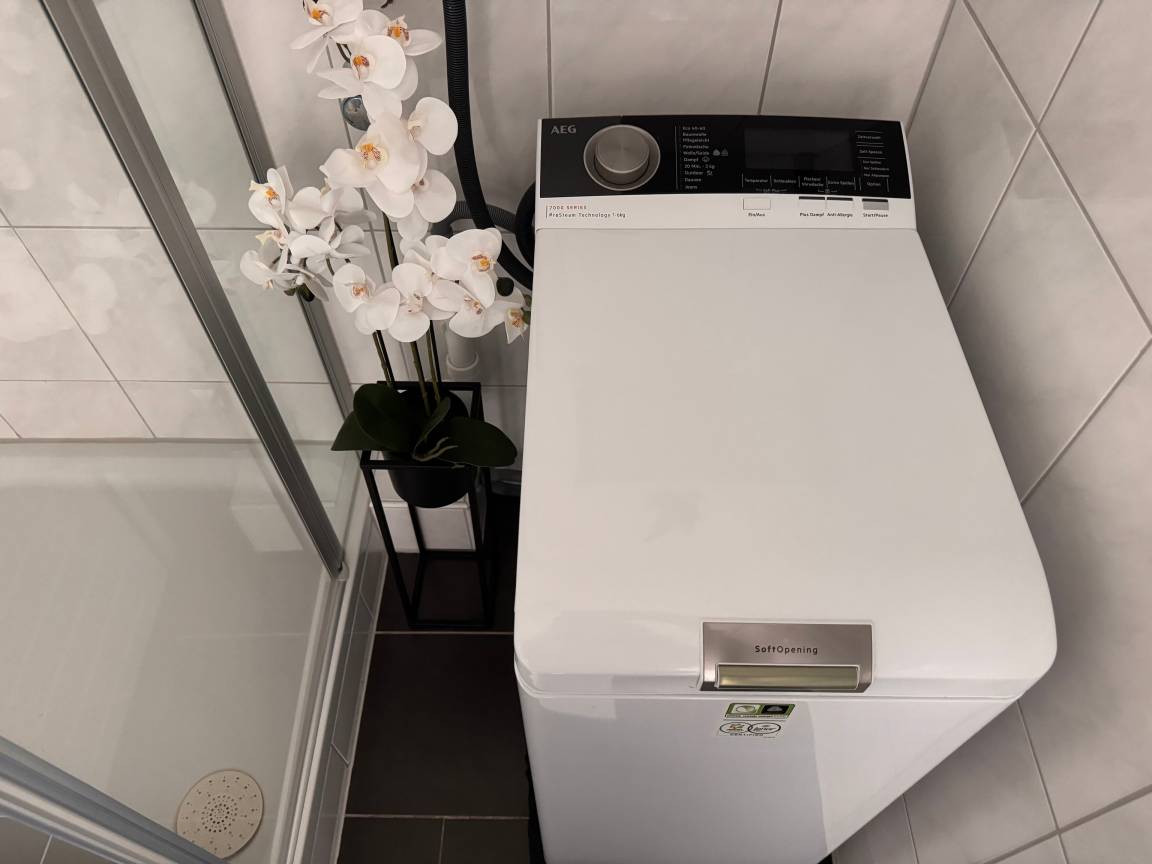 Die Ausstattung wurde mit viel Liebe zum Detail zusammengestellt. Die neue Küche, die Anfang 2025 eingebaut wurde, ist mit hochwertigen Miele-Geräten ausgestattet. Im Badezimmer steht eine Waschmaschine der Marke AEG zur Verfügung. Das Schlafsofa kann ausgezogen werden und bietet eine komfortable Schlafmöglichkeit. Die Betten sind mit hochwertigen Schlaraffia-Matratzen ausgestattet.