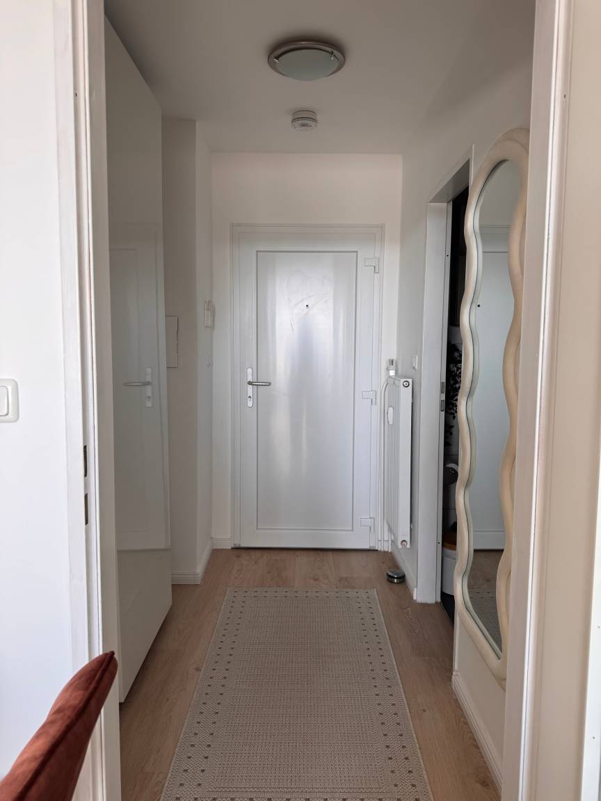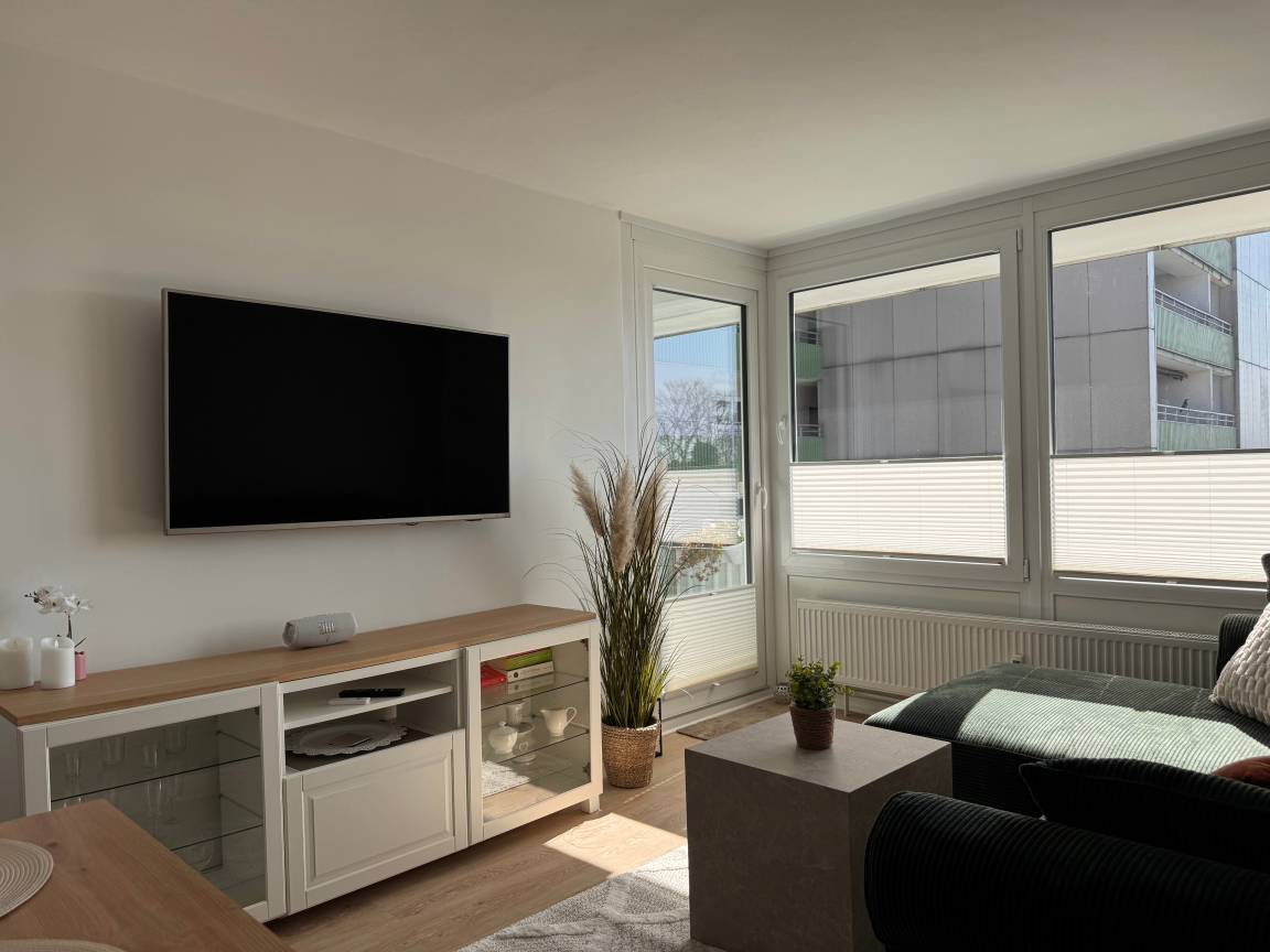 Durch die Südlage ist die Wohnung besonders hell und sonnig. Ab 11:30 Uhr bis zum Sonnenuntergang scheint die Sonne in die Räume. Dank dreifach verglaster Fenster bleibt es in der Wohnung angenehm ruhig.