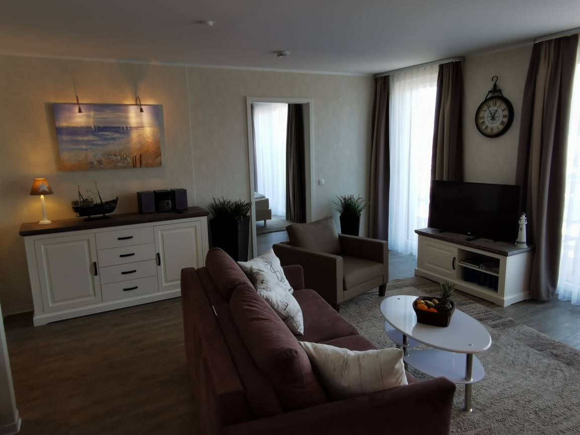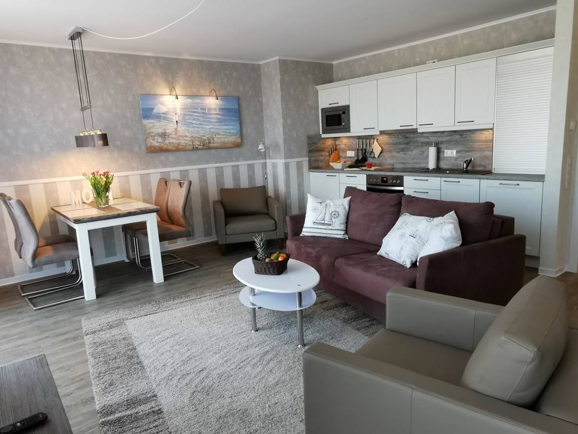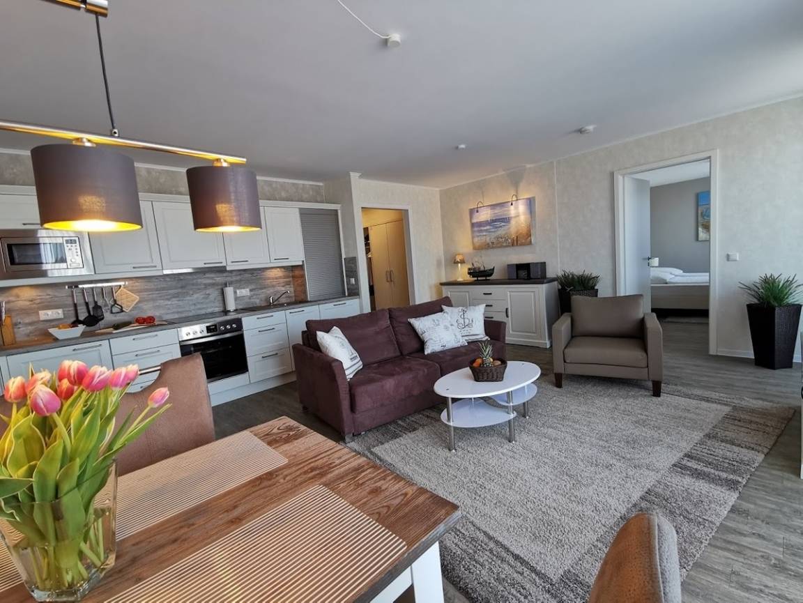 In Ihrem modern eingerichteten, großzügigen Apartment werden Sie sich von der ersten Sekunde an wohlfühlen. Für Komfort sorgen Boxspringbetten, ein eigener PKW-Stellplatz, ein Fahrstuhl sowie Waschmaschine und Trockner im Haus.