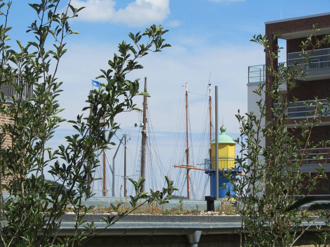 Direkt im neuen Teil des Hafenspitze Quartiers befindet sich seit Frühjahr 2018 die liebevoll eingerichtete Ferienwohnung "Silbermöwe II".