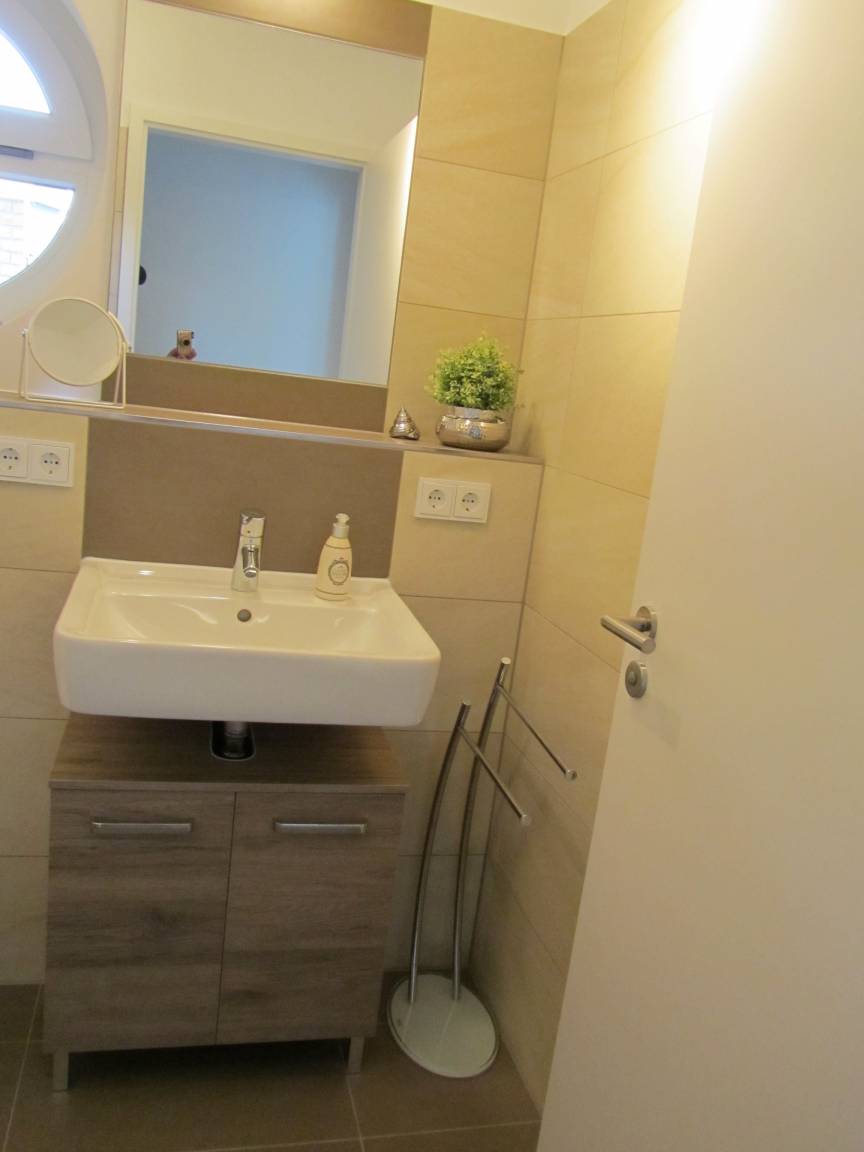 Die knapp 80 Quadratmeter große Ferienwohnung befindet sich im Hochparterre (1,70 Meter über dem Fußweg), ist stilvoll eingerichtet und sehr hell dank bodentiefer Fenster. Der Wohn-Essbereich ist angenehm groß und mit einer hochwertigen Schlafcouch (Liegefläche 160x200 m) ausgestattet. Die voll ausgestattete Küche ist im Wohnbereich integriert und bietet eine Ausstattung, die keine Wünsche offen lässt. Waschmaschine und Trockner stehen Ihnen im Hauswirtschaftsraum zur Verfügung. Im gemütlichen Schlafzimmer schlafen Sie auf einem qualitativ sehr hochwertigen Boxspringbett. Der Balkon, mit Blick in den begrünten Innenhof, lädt zum Verweilen ein. Eine Oase der Ruhe! Auch während den Veranstaltungen ein wunderbarer Rückzugsort ! Treten Sie vor die Tür, finden Sie sich direkt im regen Treiben der Hafenpromenade wieder.