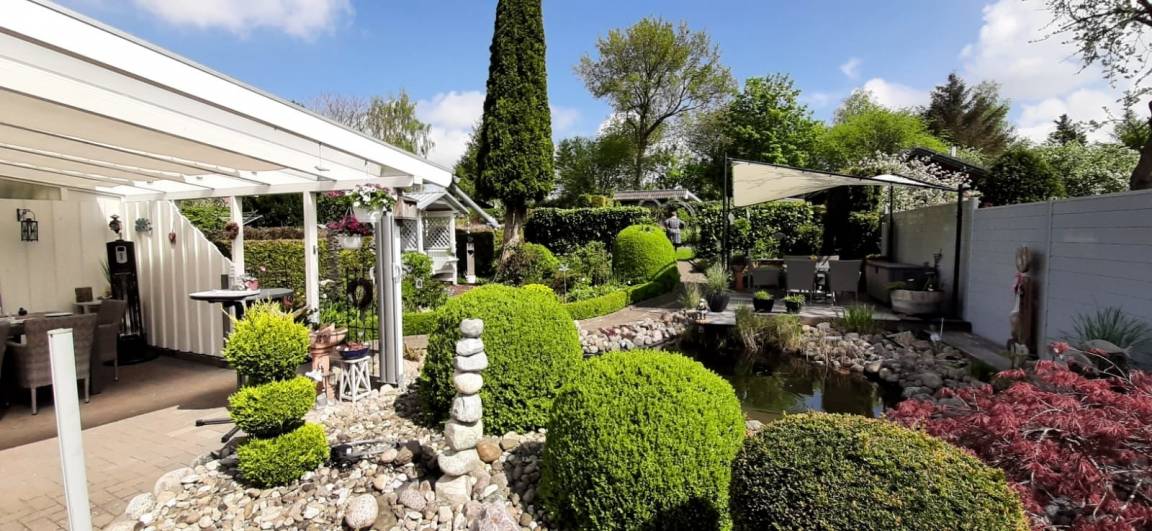 Auf dem Balkon können Sie im Strandkorb relaxen oder sich sogar das Frühstück in der Morgensonne schmecken lassen. Selbst noch in der Abendsonne können Sie bei einem Gläschen Wein, vom Balkon aus, den Blick in den schönen Garten genießen.
