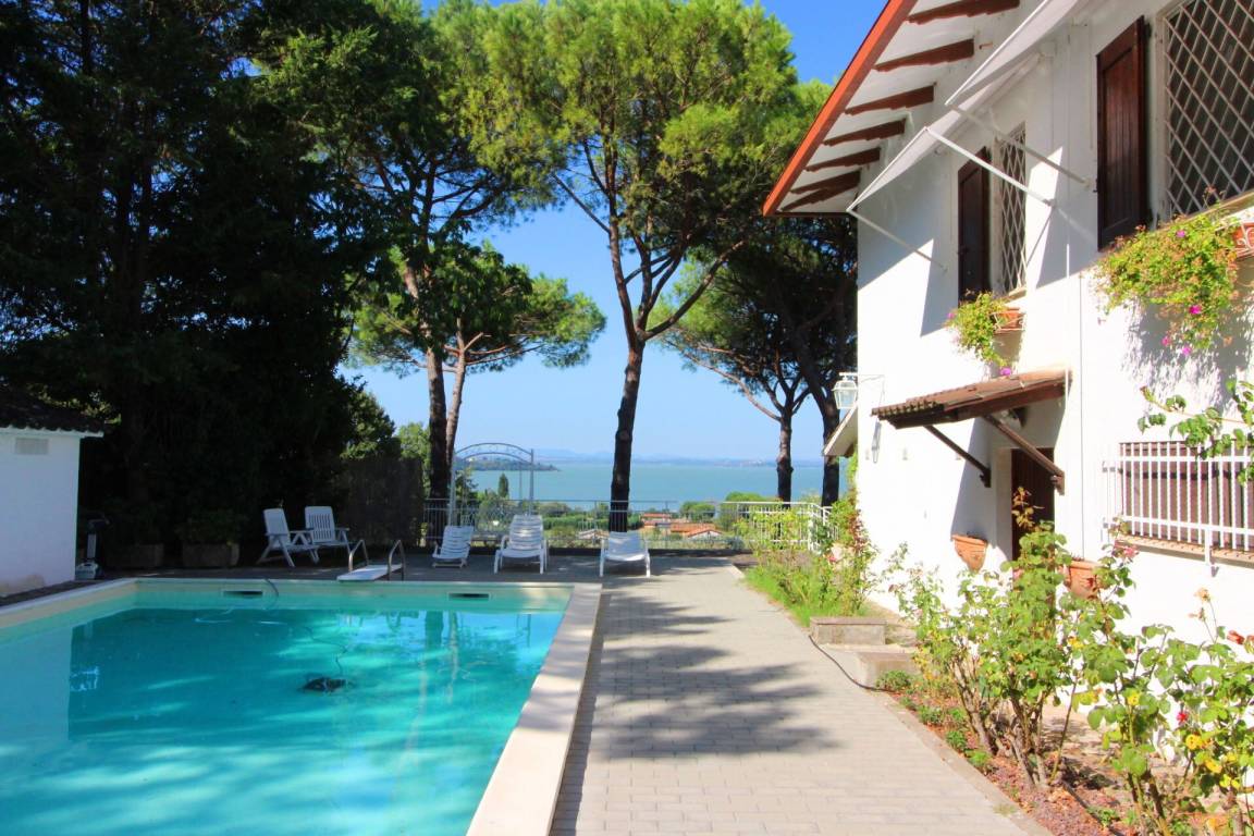 „Fijn huis, prachtig gelegen. Erg mooi uitzicht op het meer en op schitterende zonsondergangen. De verhuurster is een erg aardige dame, gastvrij en behulpzaam. De tuin is ruim en met een lekker zwembad. Het zwembad is groot genoeg om een paar baantjes in te trekken. De auto kan naast het huis staan, op eigen terrein. Kortom prima! Lovely house, beautifully situated. A beautiful view of the lake and stunning sunsets. The landlady is very kind, hospitable, and helpful. The garden is spacious and features a lovely pool. It's big enough to swim a few laps. You can park your car next to the house, on the property. In short, perfect!“