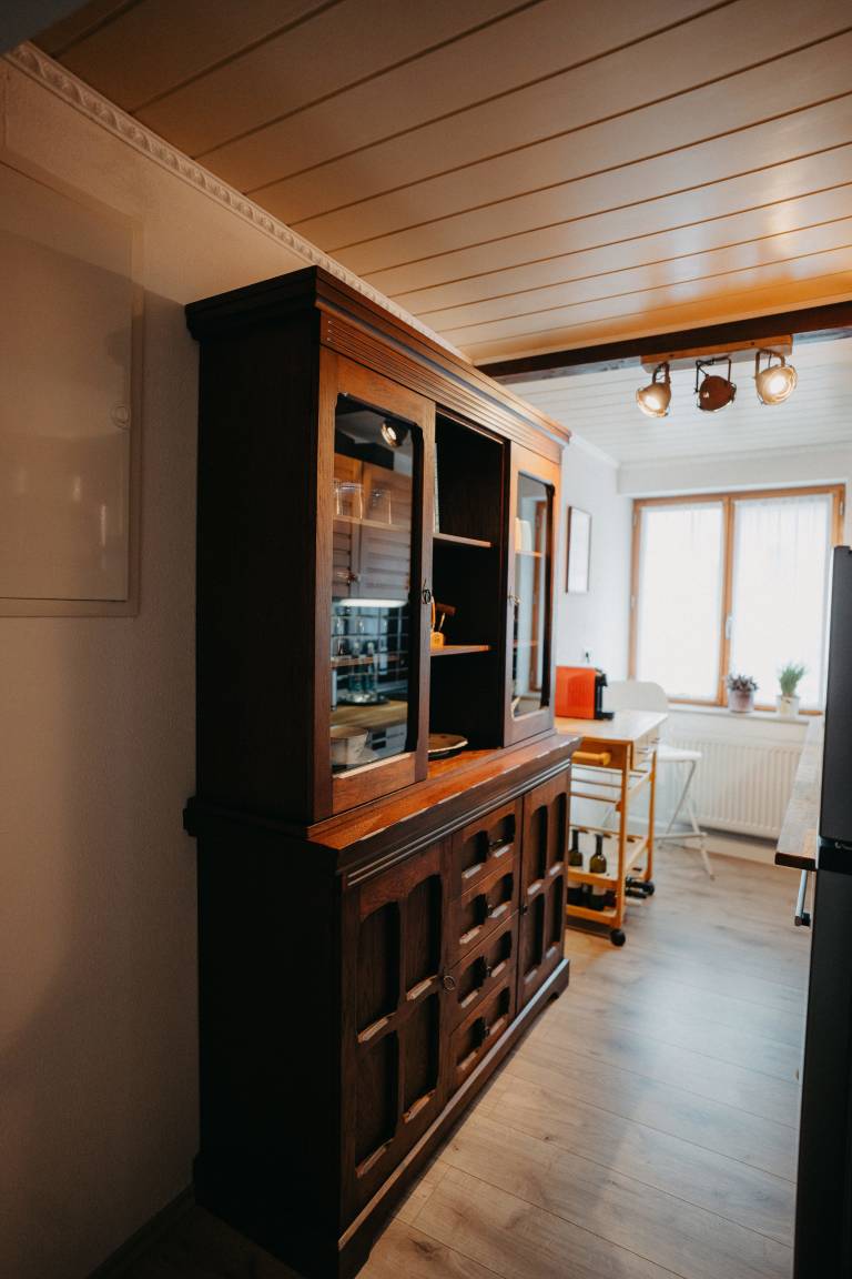Herzlich Willkommen im Altes Häusle am Waschbach. Sie wohnen in einem der älteste Häuser von Edenkoben. Einen Aufenthalt bei uns gleicht einer Reise in die Vergangenheit. Das Haus auch bekannt als Haus der schiefen Böden ist in den letzten 3 Jahren komplett Neu saniert und renoviert worden. Die Ferienwohnung Weintraube befindet sich im ersten Stock des Haupthauses und ist über eine breite Treppe zu erreichen. Die offene Küche befindet sich gleich links im Eingangs Bereich und ist komplett ausgestattet von Elektro-Geräten bis zum Geschirr und Gewürze. Die Ferienwohnung bietet Platz für Personen und mit Aufbettung im Wohnzimmer auf einer breite Schlafcouch sogar bis zu sechs Gästen.