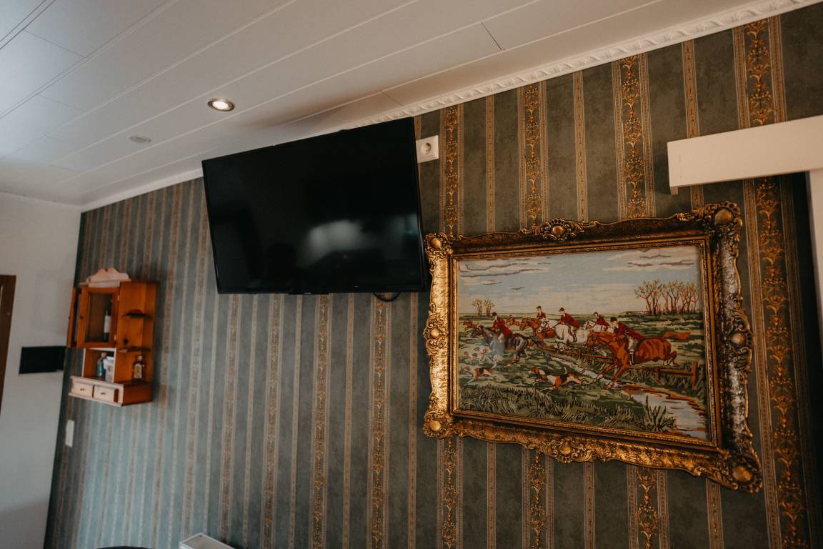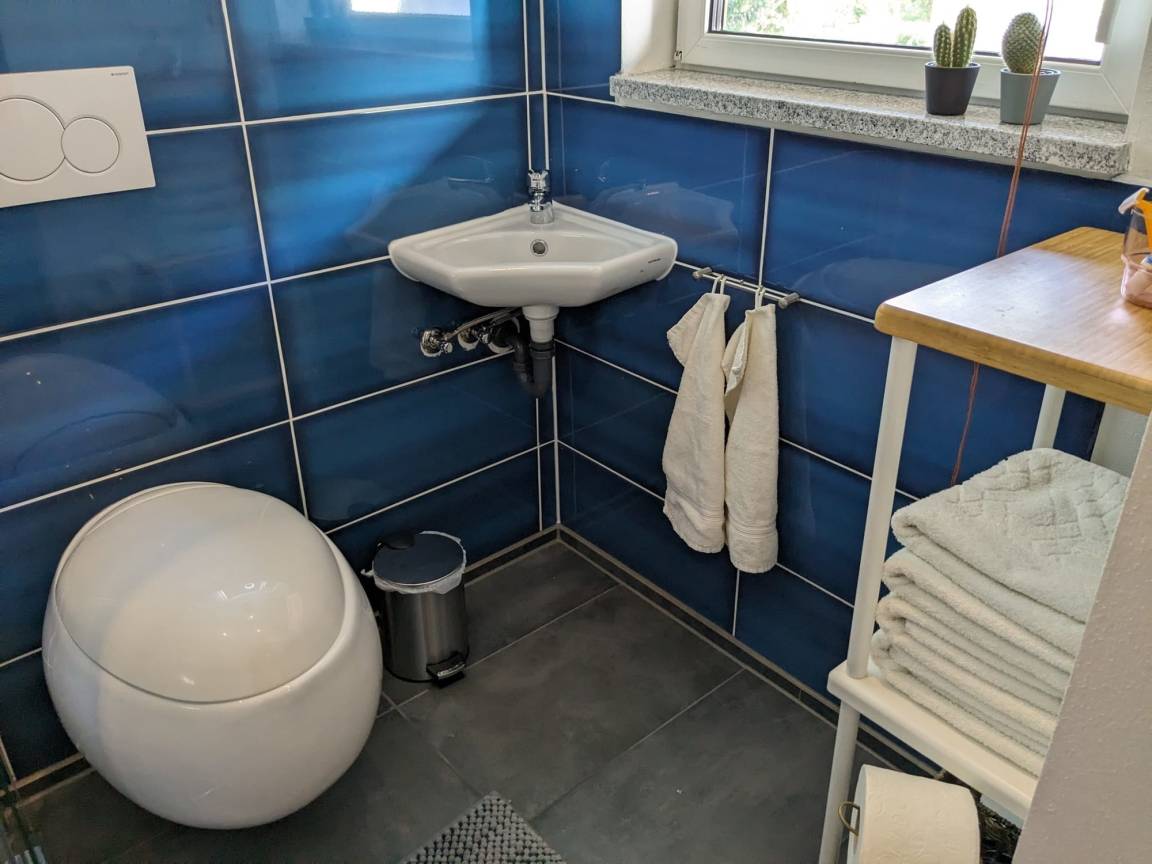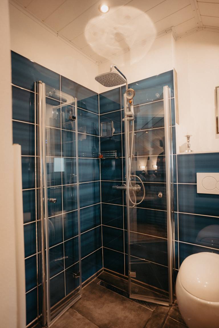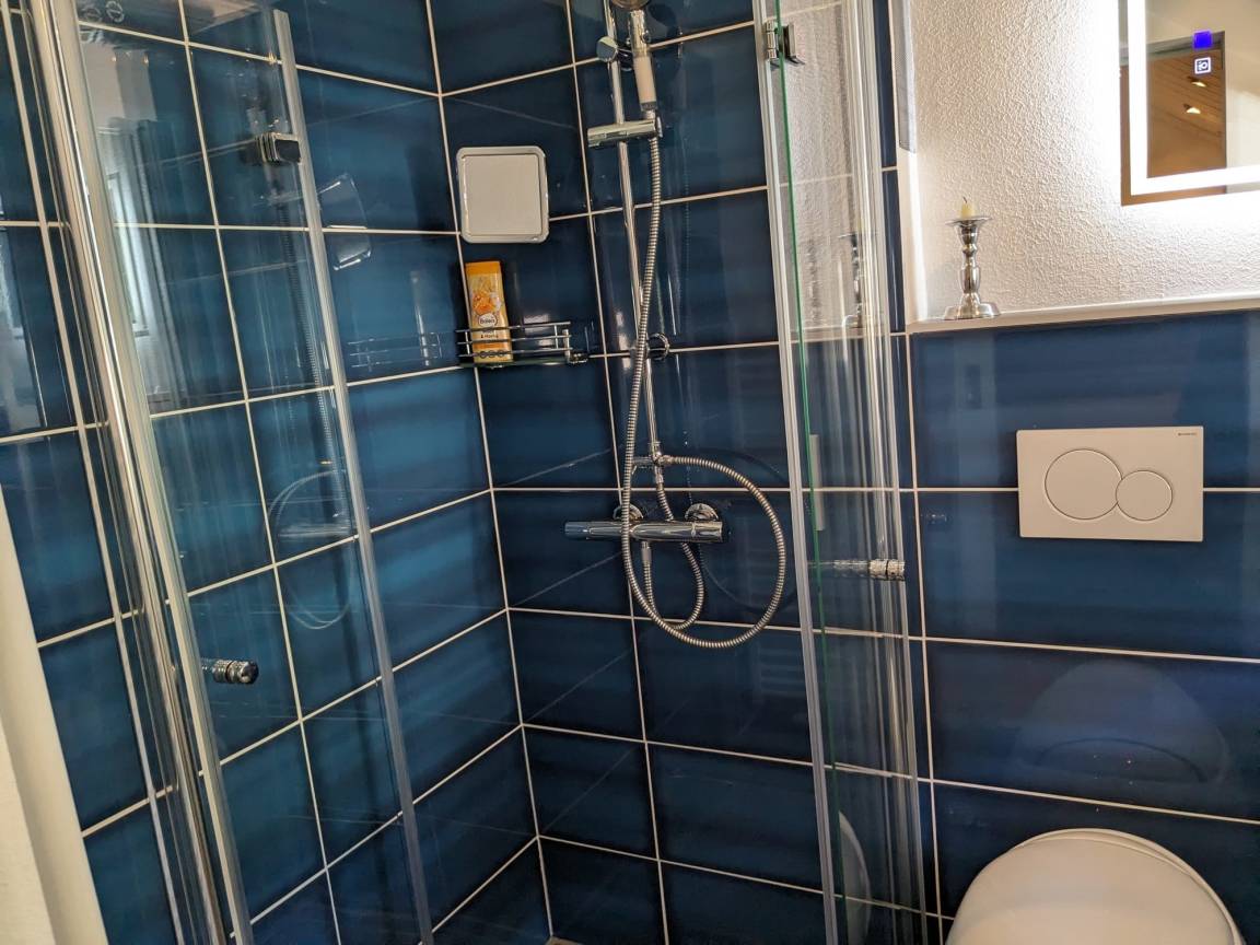 Ihrer Ferienunterkunft befindet sich im ersten Stock im Anbau des Haupthauses. Gleich im Eingangsbereich befindet sich die Garderobe und gleich rechts eine kleine Kochnische. Die Kochecke verfügt über alles was man benötigt, von Kaffeemaschine bis hin zum Kochfeld. Unterm Fenster steht das gemütliche Bett. Ein Schrank und eine Sitzgelegenheit vervollständigt das Raum. Zu Unterhaltung ist ein Fernseher, Bücherregal, Musikanlage vorhanden. Das Badezimmer mit Tageslichtfenster ist modern ausgestattet- ebenerdige Dusche.