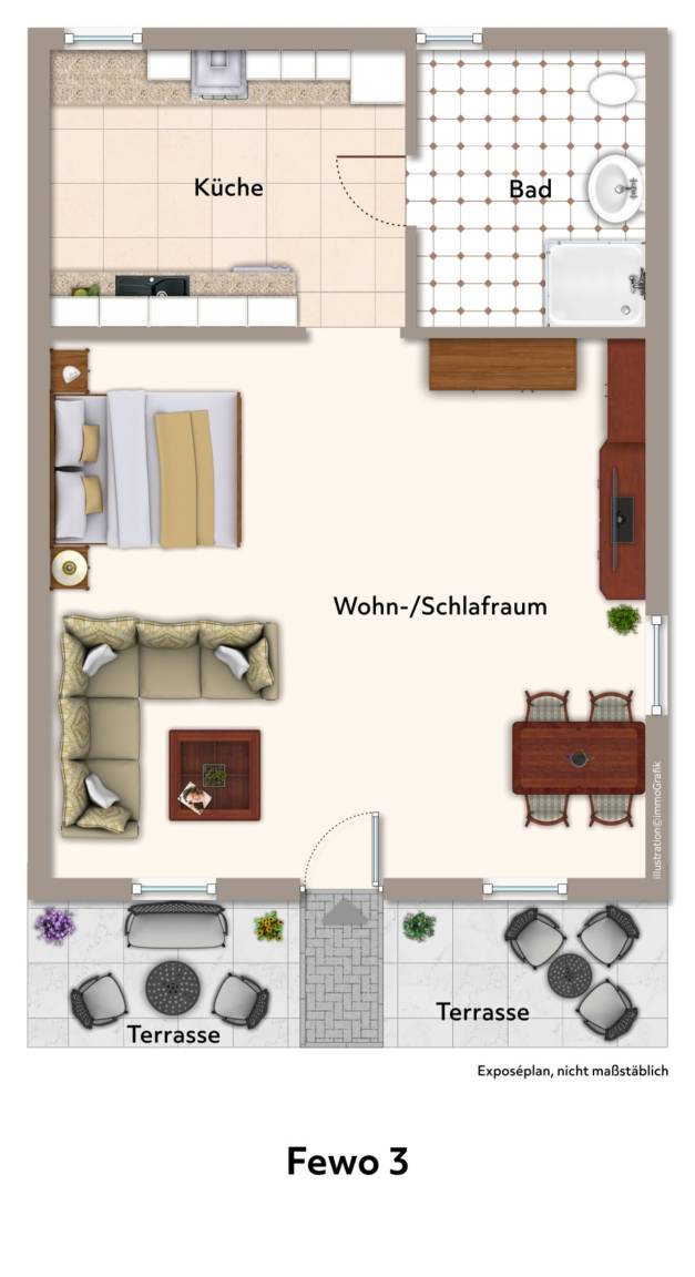 40 m² Ferienwohnung ∙ 1 Schlafzimmer ∙ 2 Gäste
