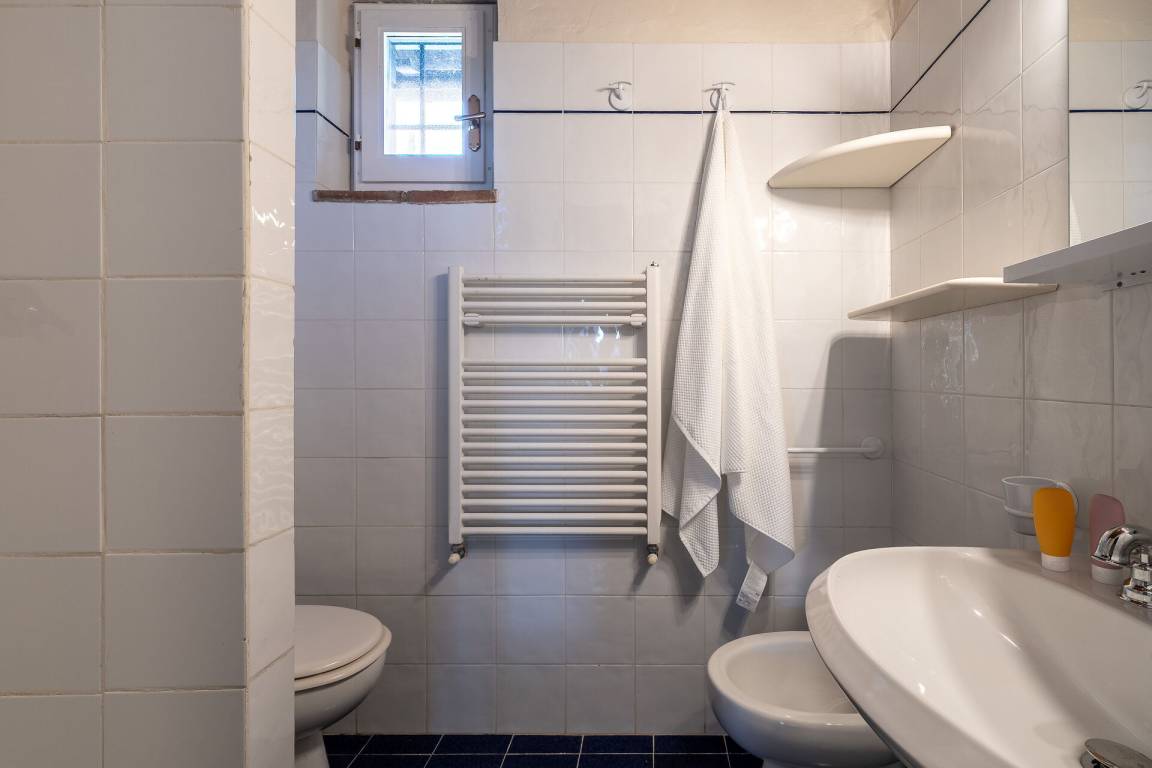 Badezimmer: Waschbecken, WC, Bidet, Dusche, Fön, WiFi Internet.