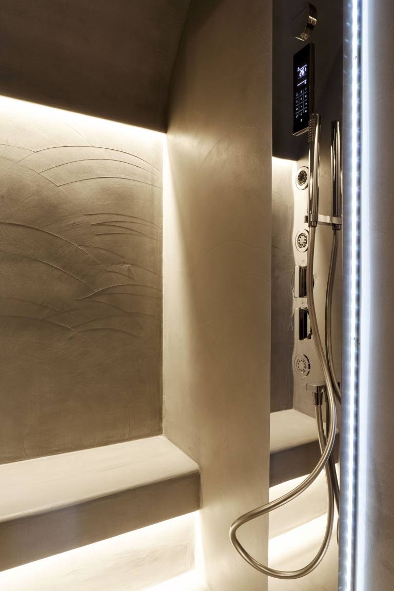 Schlafzimmer mit Bad 4 (30 m²): Doppelbett, Internet, Klimaanlage, Sessel, Schreibtisch, Kühlschrank, Waschbecken, Bidet, Dusche, Fön.