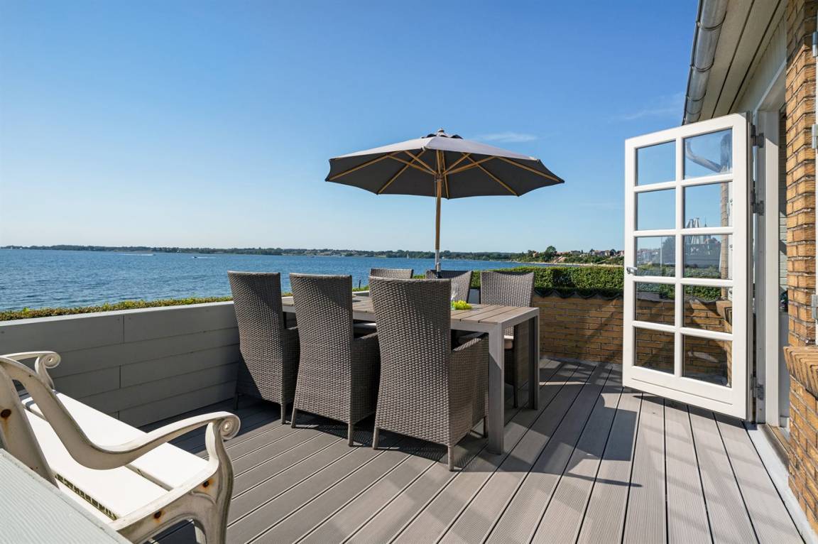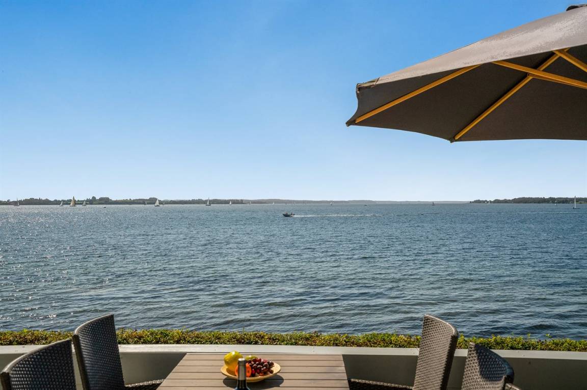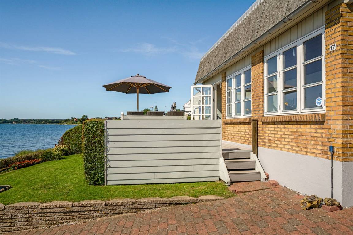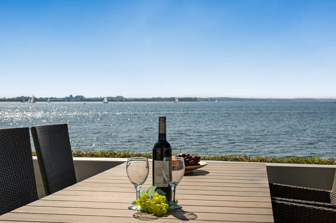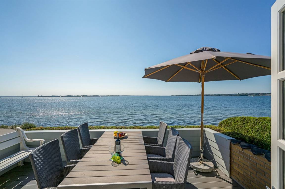 5 m vom Wasser liegt dieses schöne Ferienhaus mit Panoramablick auf das Wasser vom Haus und Grundstück.