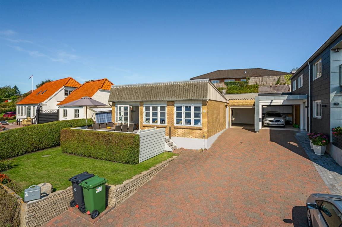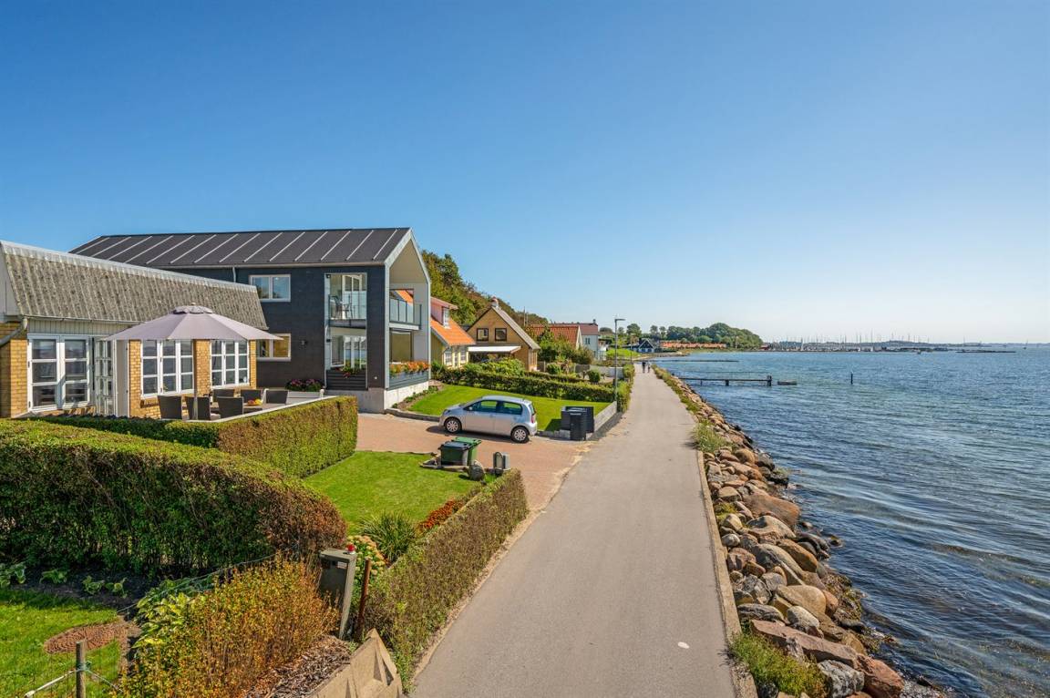 DraußenDie Ferienunterkunft liegt auf einem 150 m² großen Gartengrundstück. Die Entfernung zum Meer beträgt 5 m. Die Entfernung zum Fjord beträgt 50 m. Die nächste Einkaufsmöglichkeit liegt 5000 m entfernt. Es steht ein 25 m² Terrassenareal zur Verfügung.Es steht eine Garage zur Verfügung.