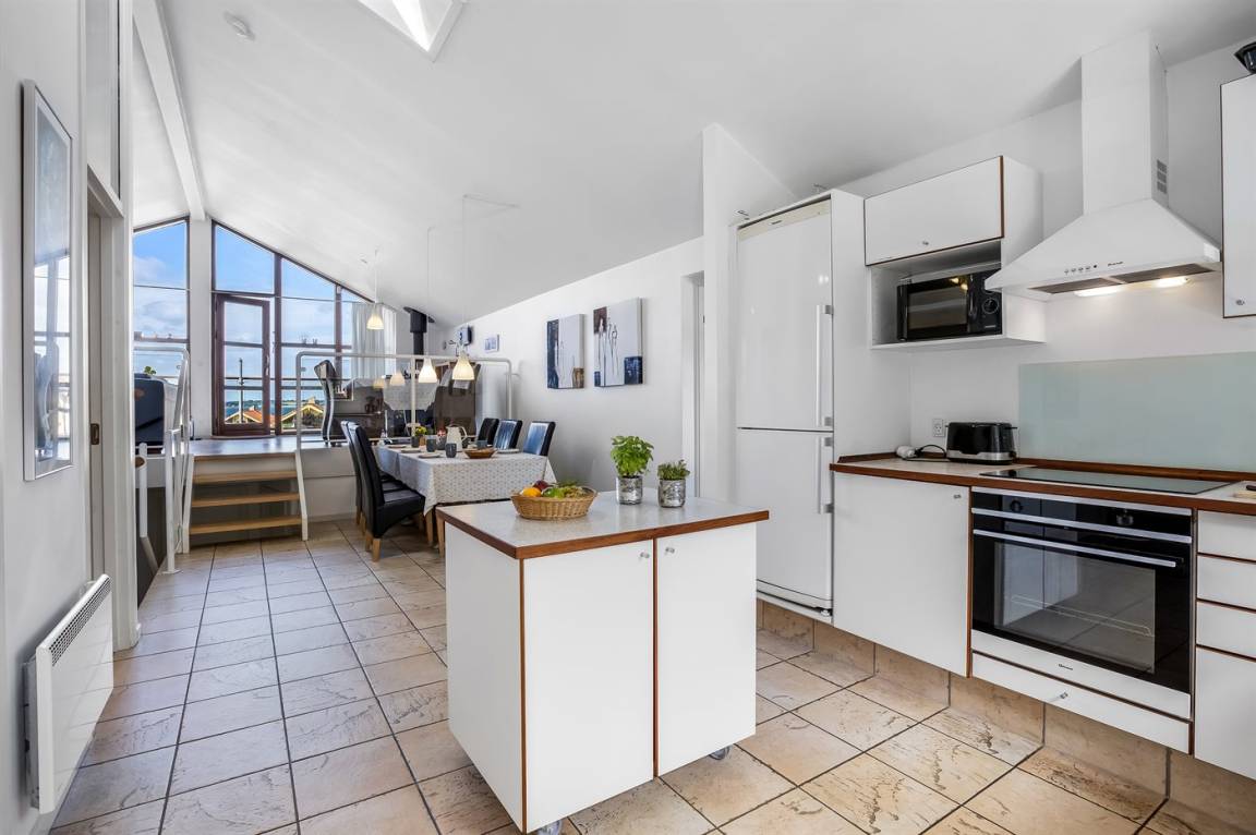 KücheDie Küche ist mit Kühlschrank ausgestattet. Außerdem gibt es 4 Induktions-Kochzonen, Umluftofen, Mikrowelle sowie Geschirrspüler.