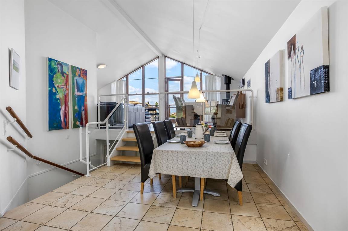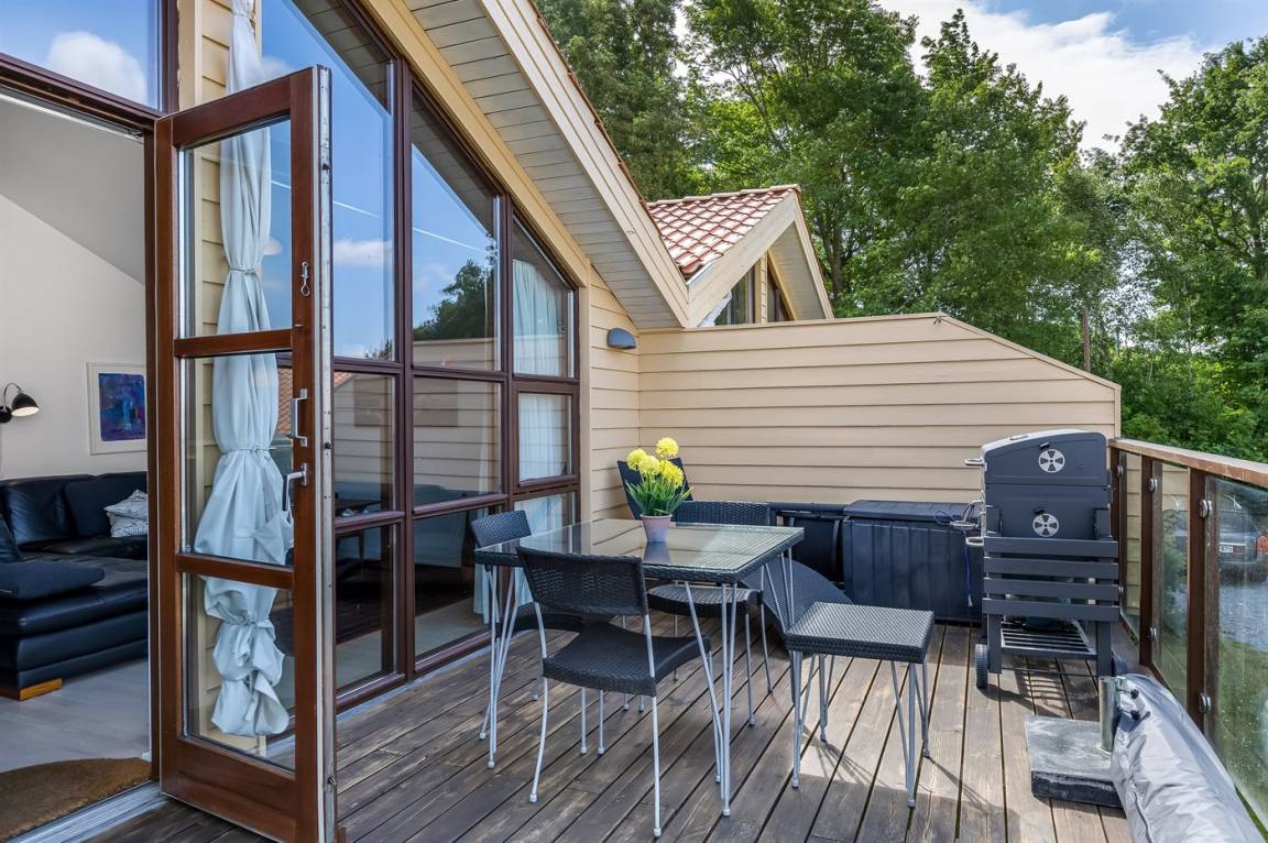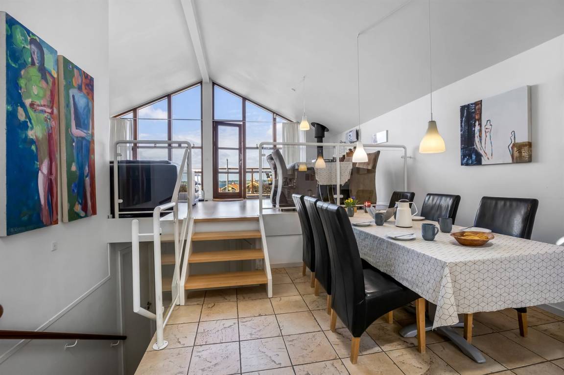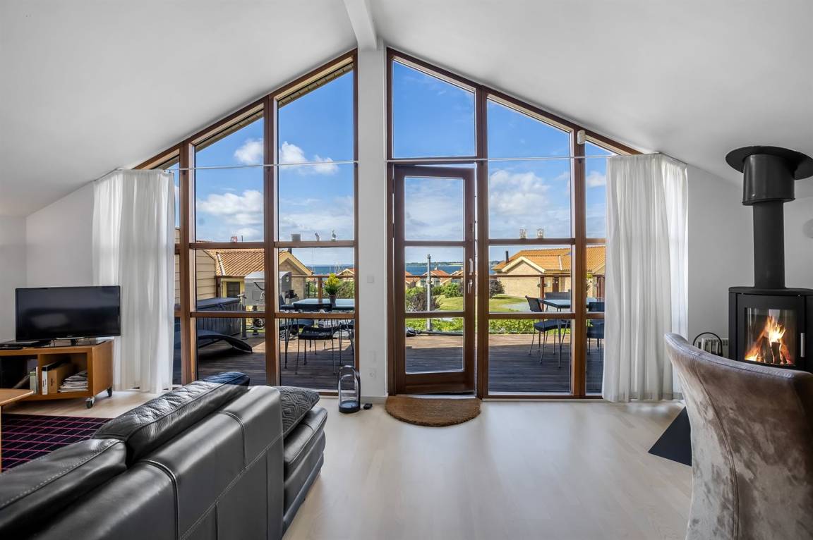 Das Ferienhaus erstreckt sich über zwei Etagen und bietet dir eine hervorragende Aussicht auf das Wasser.