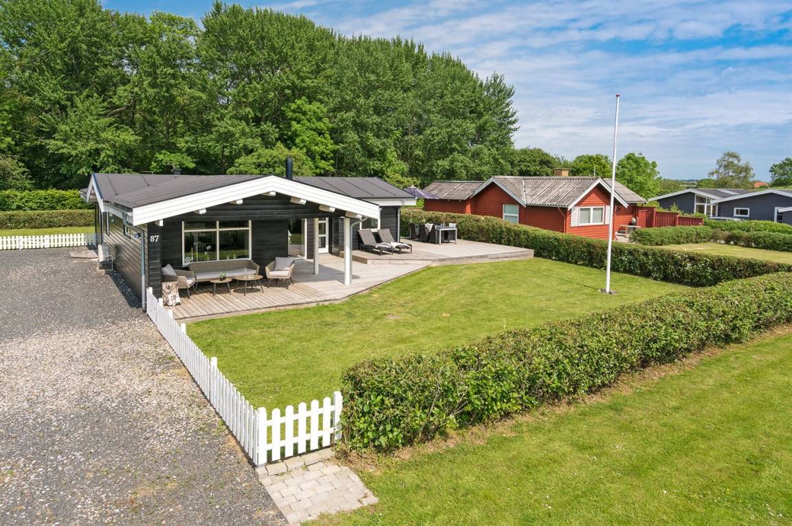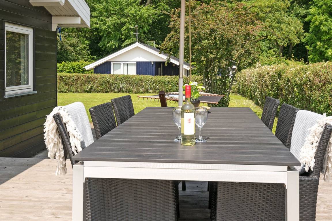 DraußenDie Ferienunterkunft liegt auf einem 803 m² großen Gartengrundstück. Die Entfernung zum Fjord beträgt 400 m. Die nächste Einkaufsmöglichkeit liegt 3400 m entfernt. Es steht ein 40 m² Terrassenareal zur Verfügung. Außerdem gibt es 8 m² überdachte Terrasse. Es steht ein Grill zur Verfügung. Parkplatz auf dem Grundstück.