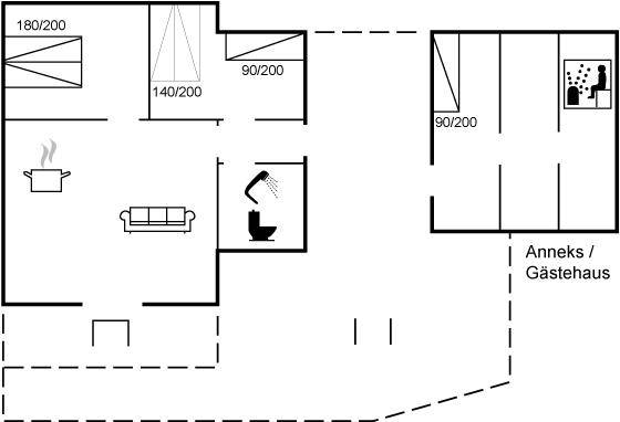 SchlafverhältnisseDie Schlafplätze verteilen sich auf 3 Schlafräume. 4 Schlafplätze in Doppelbetten. 2 Schlafplätze in Einzelbetten.- 1 von diesen Schlafplätzen befindet sich im Gästehaus. Ferner steht ein Kinderbett zur Verfügung.