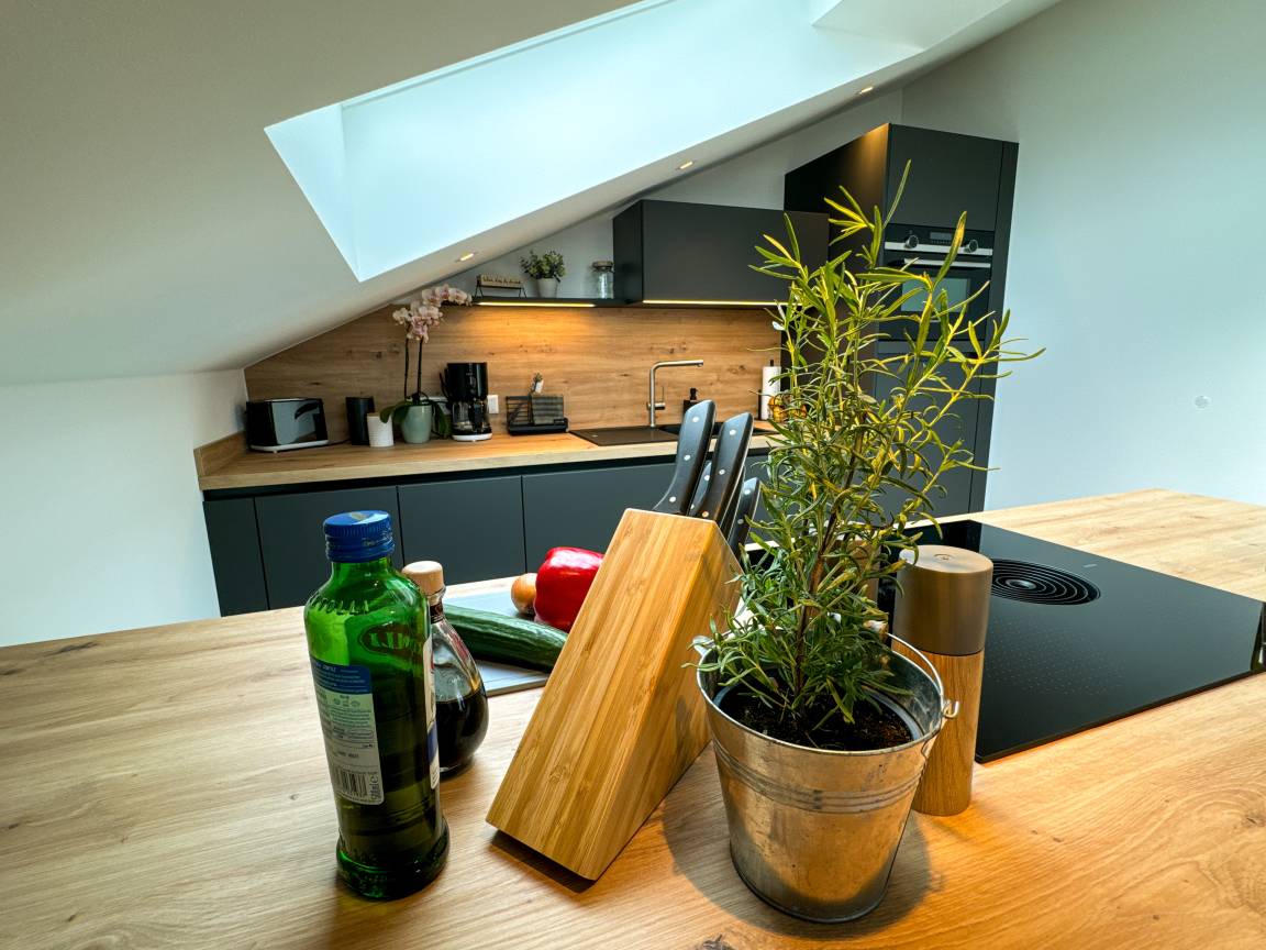 Richtige Urlaubsstimmung kommt auf dem schönen Balkon der Ferienwohnung auf. Im Urlaub kochen? Los geht's, die Küche ist gut ausgestattet, sogar mit einer Spülmaschine.