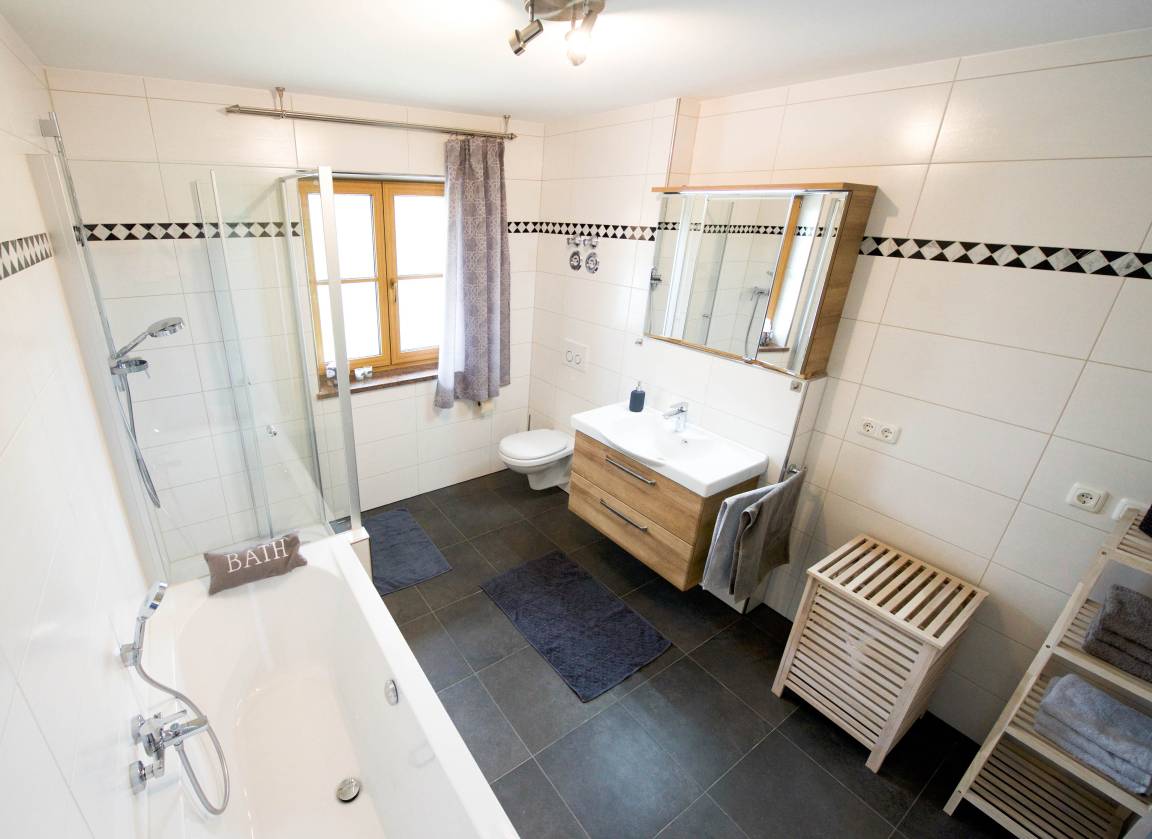 - schönes geräumiges Badezimmer mit Fenster sowie Badewanne und Dusche