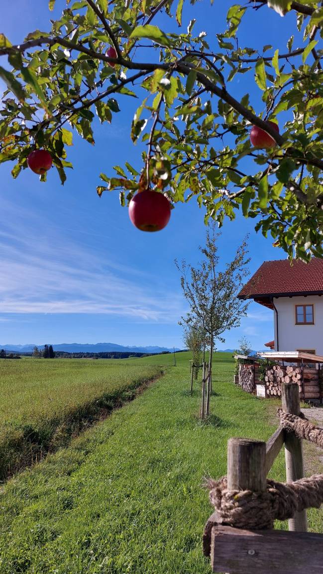 Der Kramerhof umgeben von Wiesen ist eine Ruhe-Oase zwischen München und den Alpen.