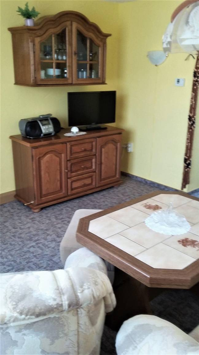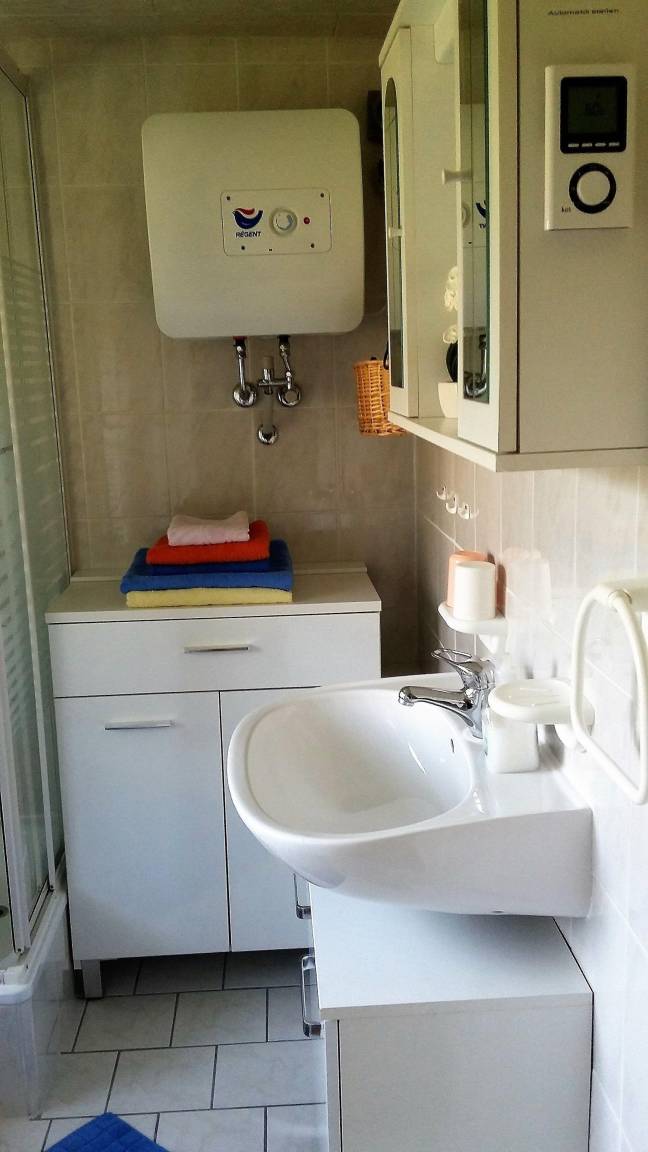 -Dusche, WC, TV , Radio, gut ausgestattete Mini-Küche (2 Kochplatten mit Dunstabzug, Kühlschrank, Wasserkocher, Kaffeemaschine, Mikrowelle, Toaster, Eierkocher, Geschirr, Gläser, Besteck )