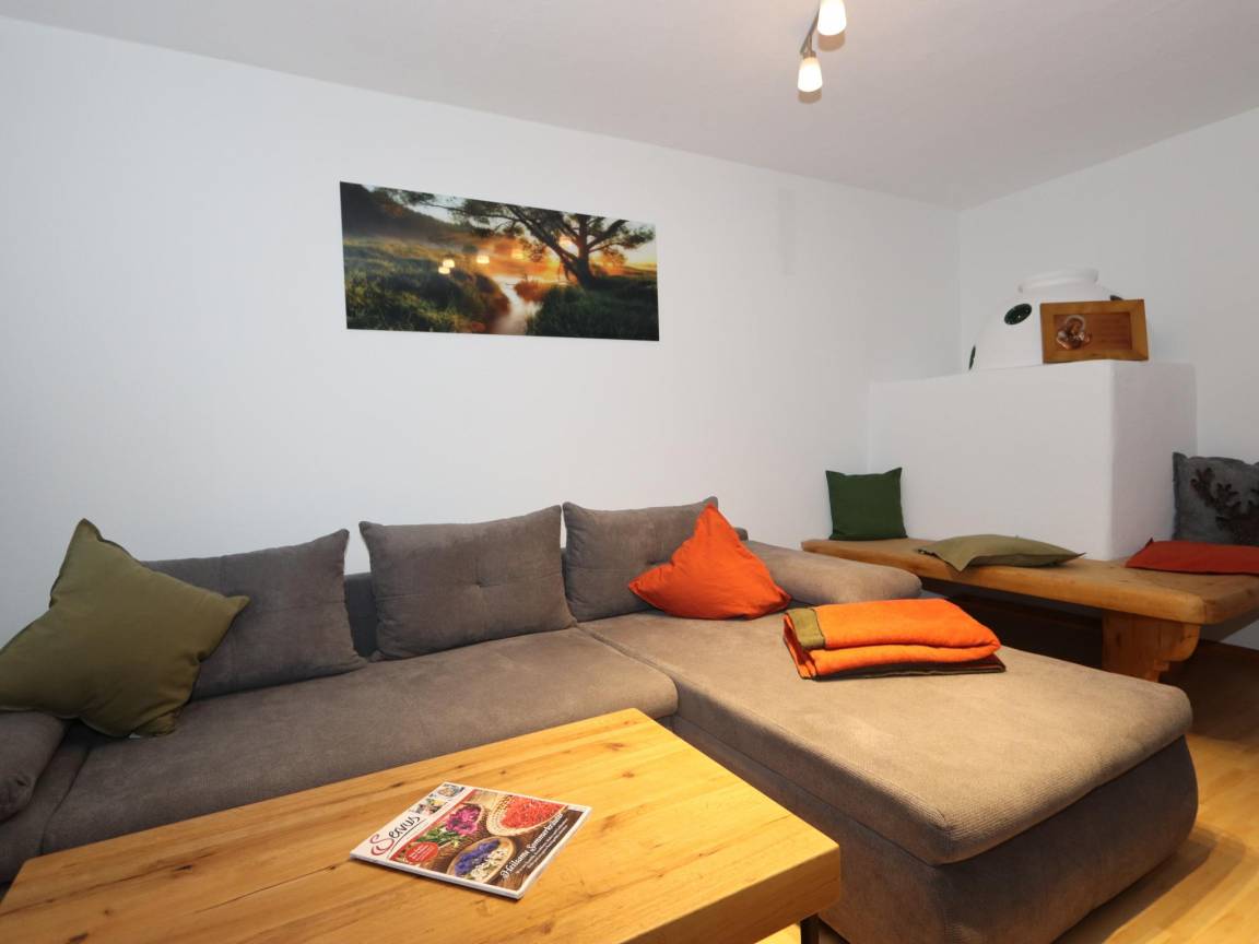 Layout : Parterre: Wohnzimmer mit Doppelschlafcouch, TV(Flatscreen, Satellit), Ofen(Kachel) , Wohnküche mit Esstisch, Sitzecke, Wasserkocher, Kochherd(4 Kochplatten, Ceranfeld), Dunstabzugshaube, Kaffeemaschine(pads), Backofen, Mikrowelle, Kühlschrank , Schlafzimmer mit Doppelbett , Badezimmer mit Dusche, Waschbecken, Toilette , Flur