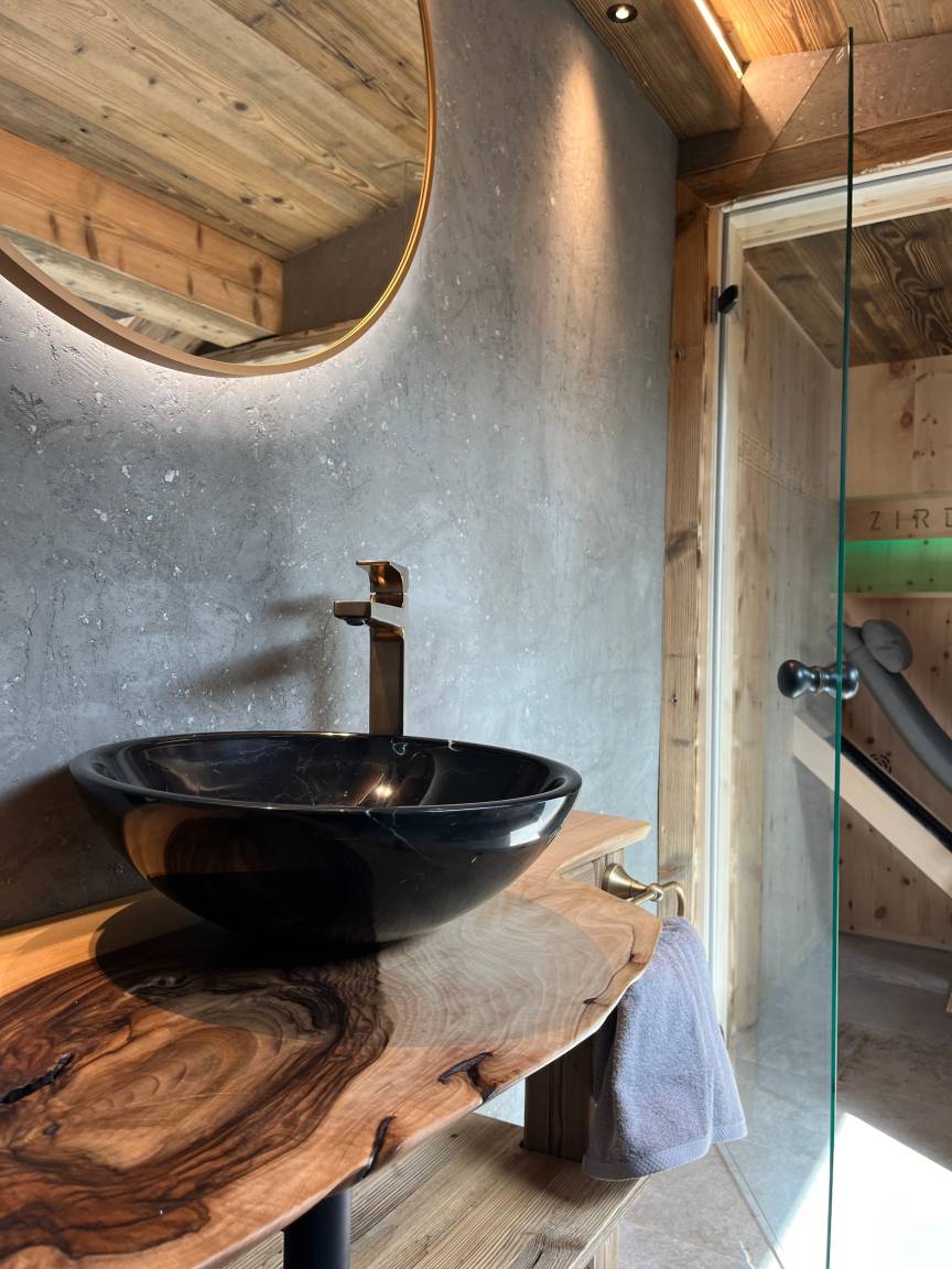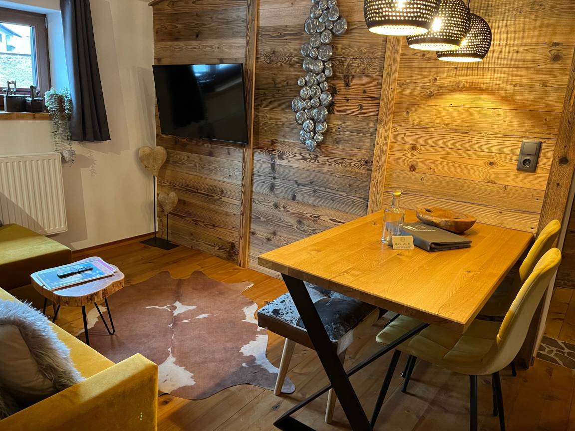 Das Meinrad befindet sich im 2. Stock und verfügt über eine eigene Infrarot Doppelkabine, einen eigenen Balkon mit Blick auf den Grubigstein. Ein separates Kinder Zimmer mit Balkon, die Wände in Altholz, moderner Hüttenstyle, gemütliches Lichtkonzept, hochwertige Möbel aus Holz, Verdunklungs-Vorhänge, W-Lan.