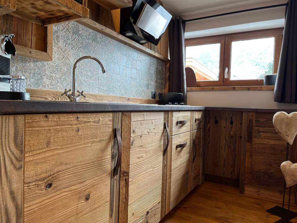 Die offene Wohn-Küche ist ausgestattet mit Ceran-Kochfeld, Geschirrspüler, Mikrowelle, Nespresso Kapsel Maschine, Wasserkocher, Toaster, Filterkaffee Maschine auf Nachfrage.