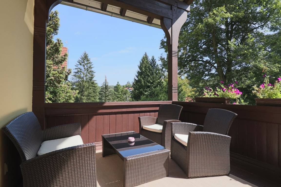Die Ferienwohnung 1 bietet mit 46 m² großzügig Platz für zwei Personen. Sie verfügt über einen Flurbereich, ein Schlafzimmer mit Doppelbett, ein Badezimmer (m. Fenster), ein gemütliches Wohnzimmer mit großer Eckcouch, in welches abgetrennt der Küchenbereich integriert wurde. Die modern ausgestattete Küche verfügt über Cerankochfeld (4-Feld), Kühl-/ Gefrierkombination, Spülmaschine, Mikrowelle, Toaster, Kaffeemaschine und Wasserkocher sowie einem separaten Esstisch. Der große Balkon mit 14 m² lädt dazu ein, die Ruhe und den Blick ins Grüne zu genießen. Eine im hauseigenen Garten befindliche Terrasse für die Gäste des Hauses lädt zudem zum geselligen Beisammensitzen mit Blick ins Grüne sowie zum Grillen ein. Grillzubehör stellen wir Ihnen auf Anfrage gerne bereit!