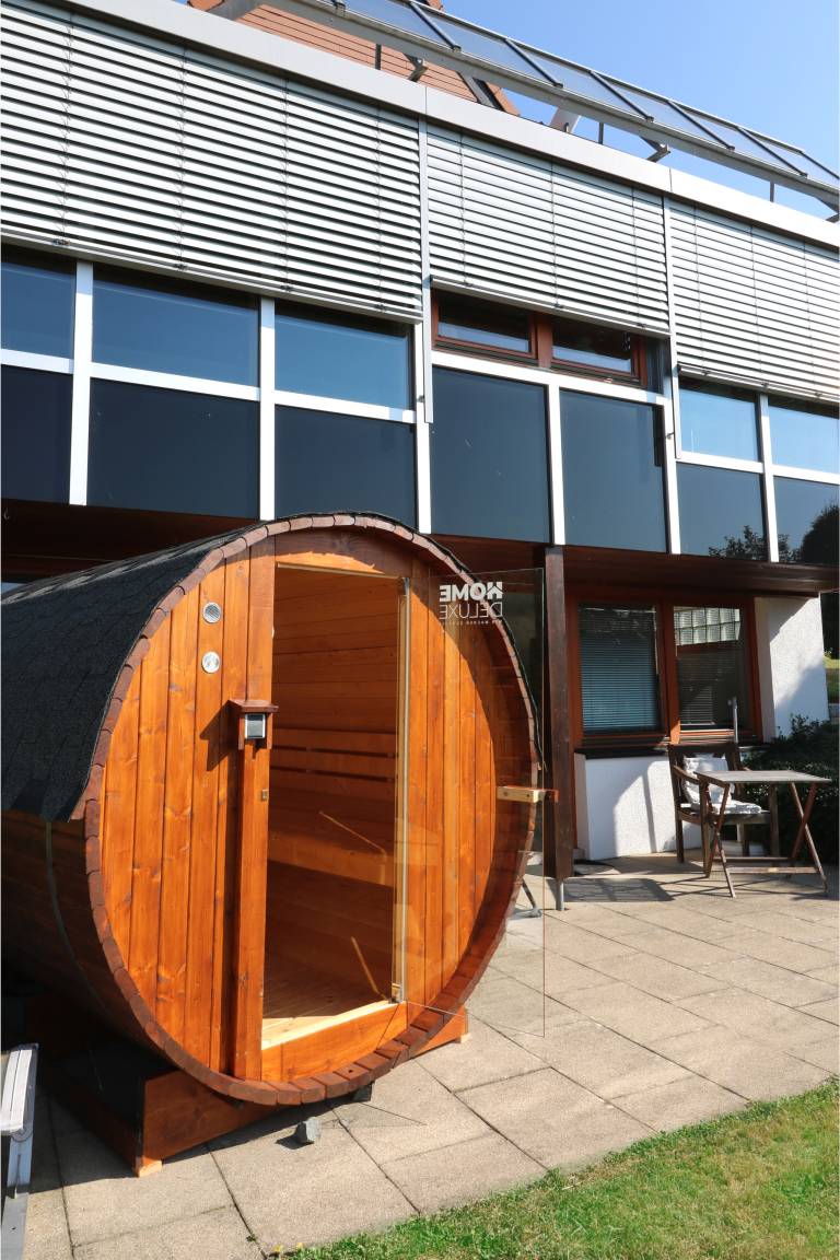 - 1 large garden with terrace, garden furniture, barbecue area and barrel sauna
