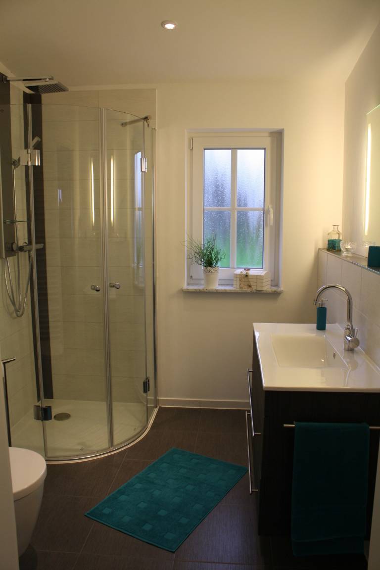 Sie betreten über eine großzügige Holzterrasse das Haus. Vom Eingangsbereich mit Garderobe, Schirmständer und Schuhablage aus gelangt man in den Wohnbereich.