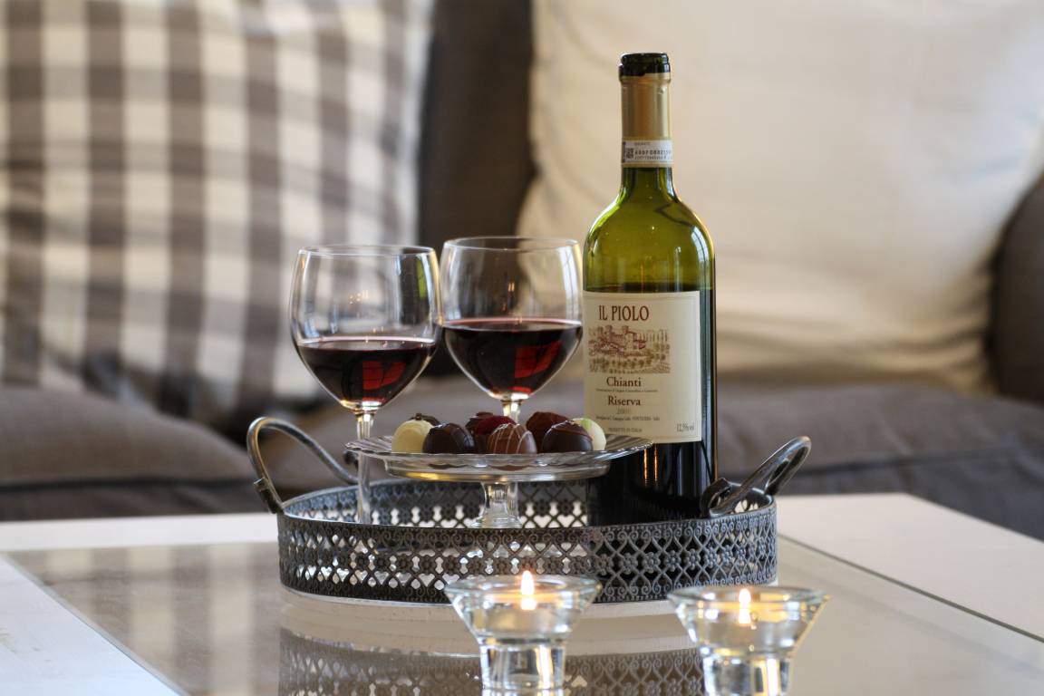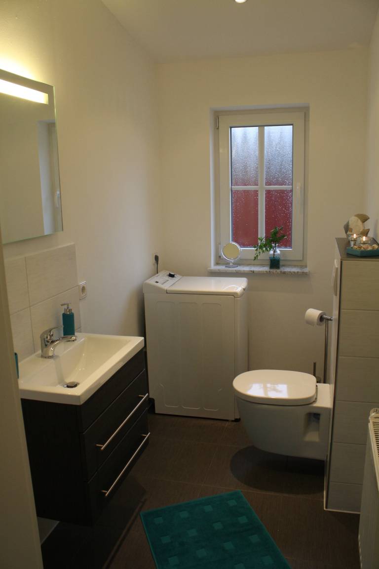 Für die kalte Jahreszeit befindet sich in unserem Wohnbereich ein Kaminofen mit zwei gemütlichen Sesseln davor. Der Wohn-Essbereich verfügt noch über einen großzügigen Esstisch mit 6 Stühlen, eine schöne Sitzgarnitur, Couchtisch, Vitrine, Smart- TV, DVD-Spieler und eine Hi-Fi-Anlage.